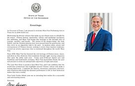 Shen Yun Performing Arts započeo je svoju turneju 2026. u Teksasu predstavom u Hjustonu 26. decembra 2025, a planirano je da održi više od 40 predstava u 9 gradova. Greg Abot, guverner Teksasa, napisao je pismo kako bi poželeo dobrodošlicu Shen Yunu ...