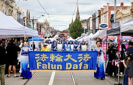 Bilo je prometno na Glenferi festivalu, održanom u poznatom poslovnom okrugu u Hotornu, gde je nastup praktikanata Falun Dafe započeo festival.Na veb stranici događaja bio je objavljen program dana sa nastupima raznih grupa. Tian Guo marširajući ...