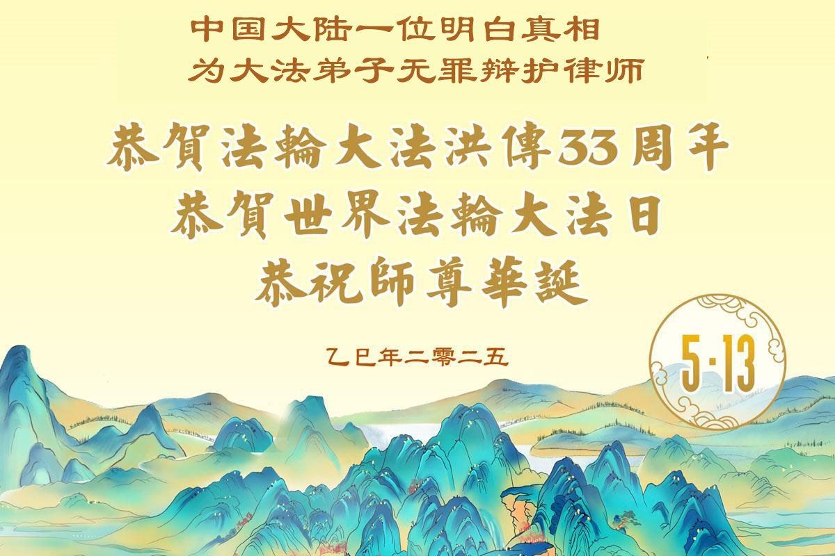 Advokat koji brani Falun Dafa praktikante čestitao je Učitelju Liju: „Imate praktikante širom svijeta. Ganut sam što vidim da vaši praktikanti, uprkos progonu, i dalje pokušavaju pomoći i spasiti ljude. Oni su dirnuli svijet i nebo. Oni klešu spomenike istorije. Pravda će biti zadovoljena. Radujem se trenutku kada će Fa ispraviti ljudski svijet.“