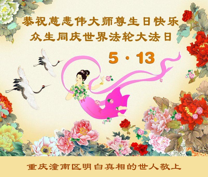 Jedan nepraktikant iz okruga Tongnan u Chongqingu je napisao: „Na ovaj sretni dan, 13. maja, želim Učitelju sretan rođendan. Hvala vam što ste nam donijeli nadu i vjeru. Pokazali ste nam kako se bez očaja suočiti s tragedijama. Praktikanti koračaju naprijed sa dobrodušnošću i snažnom željom da više ljudi shvati istinu. Neka se svaki život vrati na pravi put.“