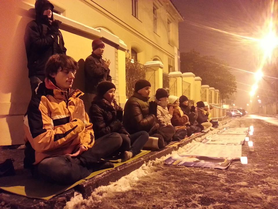 Češki praktikanti su na Staru godinu organizirali bdijenje uz svijeće ispred kineskog veleposlanstva u Pragu, u znak protesta zbog 15 godina progona Falun Gonga u Kini i u ime podrške praktikantima u Kini koji se na miroljubiv način opiru progonu.