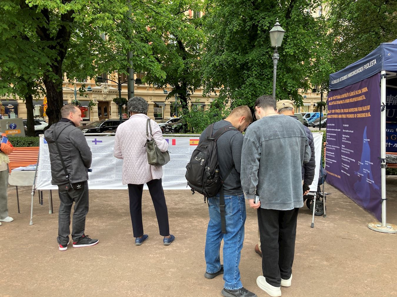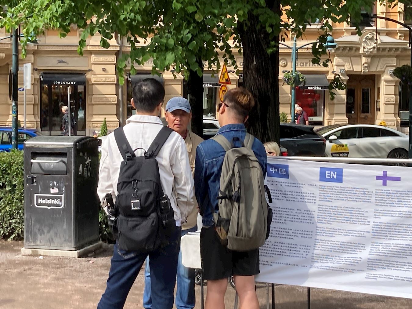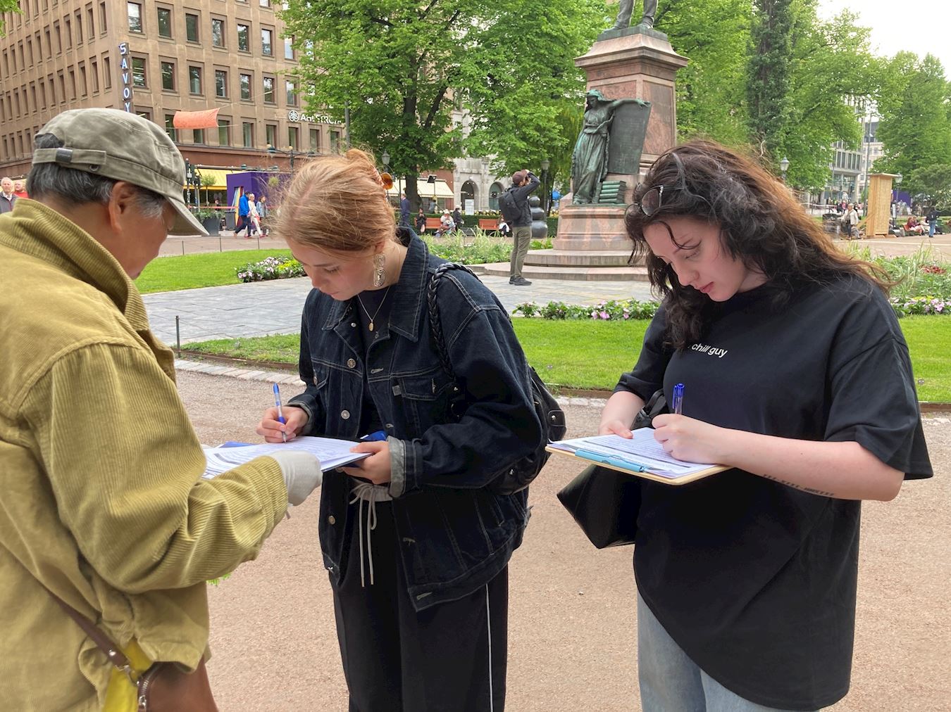 Jedan praktikant je rekao: „Finska je veoma bezbedna. Ali u Kini su životi mnogih praktikanata u opasnosti. Praktikanti van Kine učestvuju u aktivnostima kako bi ljudi saznali za progon, u cilju zaustavljanja zlih dela KPK.“ Kada je čuo da praktikanti prikupljaju potpise više od 20 godina, primetio je: „To je veoma dugo!“