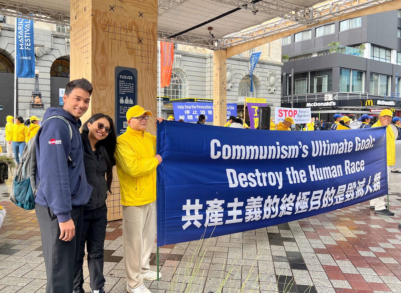 Međunarodni dan podrške žrtvama mučenja se svake godine obilježava 26. juna, u organizaciji UN-a. Praktikanti Falun Gonga su održali skup u Commercial Bayu u Aucklandu. Na skupu održanom 28. juna 2025. godine, političke ličnosti i aktivisti za ljudska prava su došli izraziti podršku naporima praktikanata da razotkriju progon Falun Gonga od strane Komunističke partije Kine (KPK) koji traje već 26 godina. Nakon skupa, praktikanti su održali marš ulicom Queen.