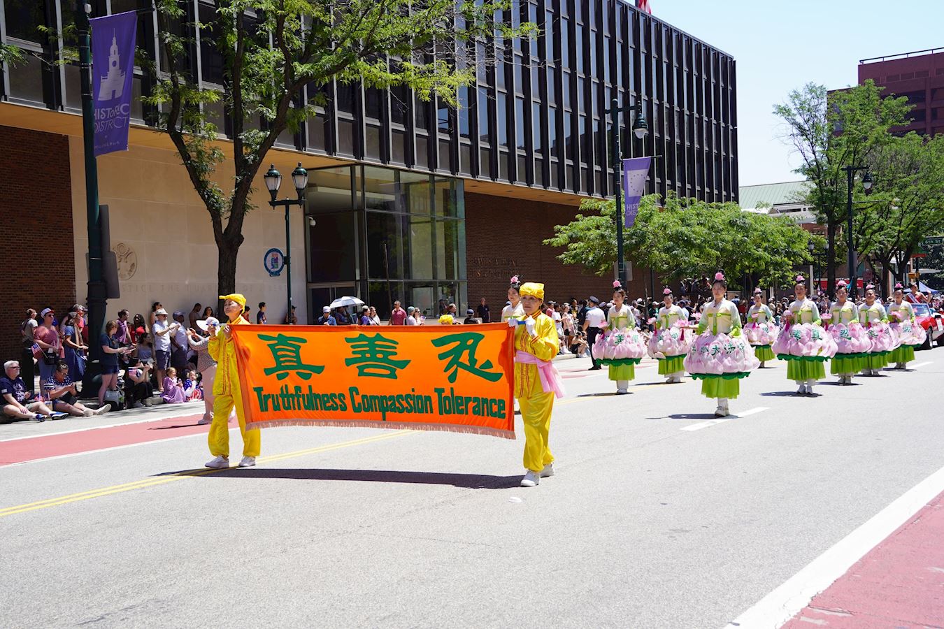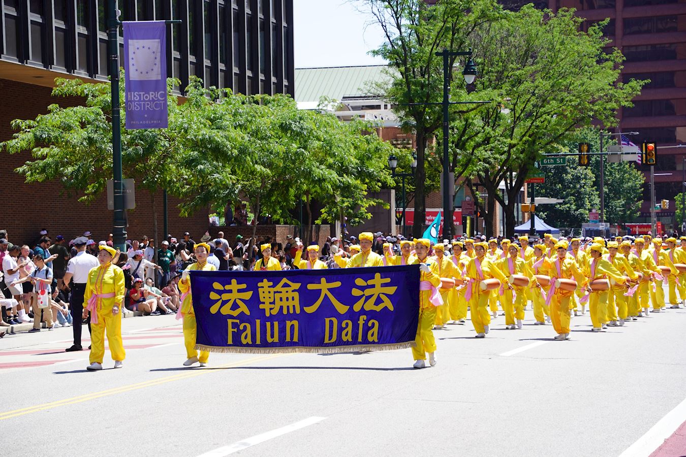 Philadelphia, rodno mjesto Deklaracije o neovisnosti, i njezino predgrađe Glenside, održali su 4. srpnja velike parade u čast 249. Dana neovisnosti. Praktikanti Falun Dafa bili su pozvani na oba događaja kako bi se pridružili svečanostima zajedno s drugim sudionicima odjevenim u razne etničke kostime. Tim praktikanata koji su svirali bubnjeve oko struka i grupa lotosovog cvijeta doputovali su iz New Yorka kako bi sudjelovali i bili su dobro primljeni od strane gledatelja.