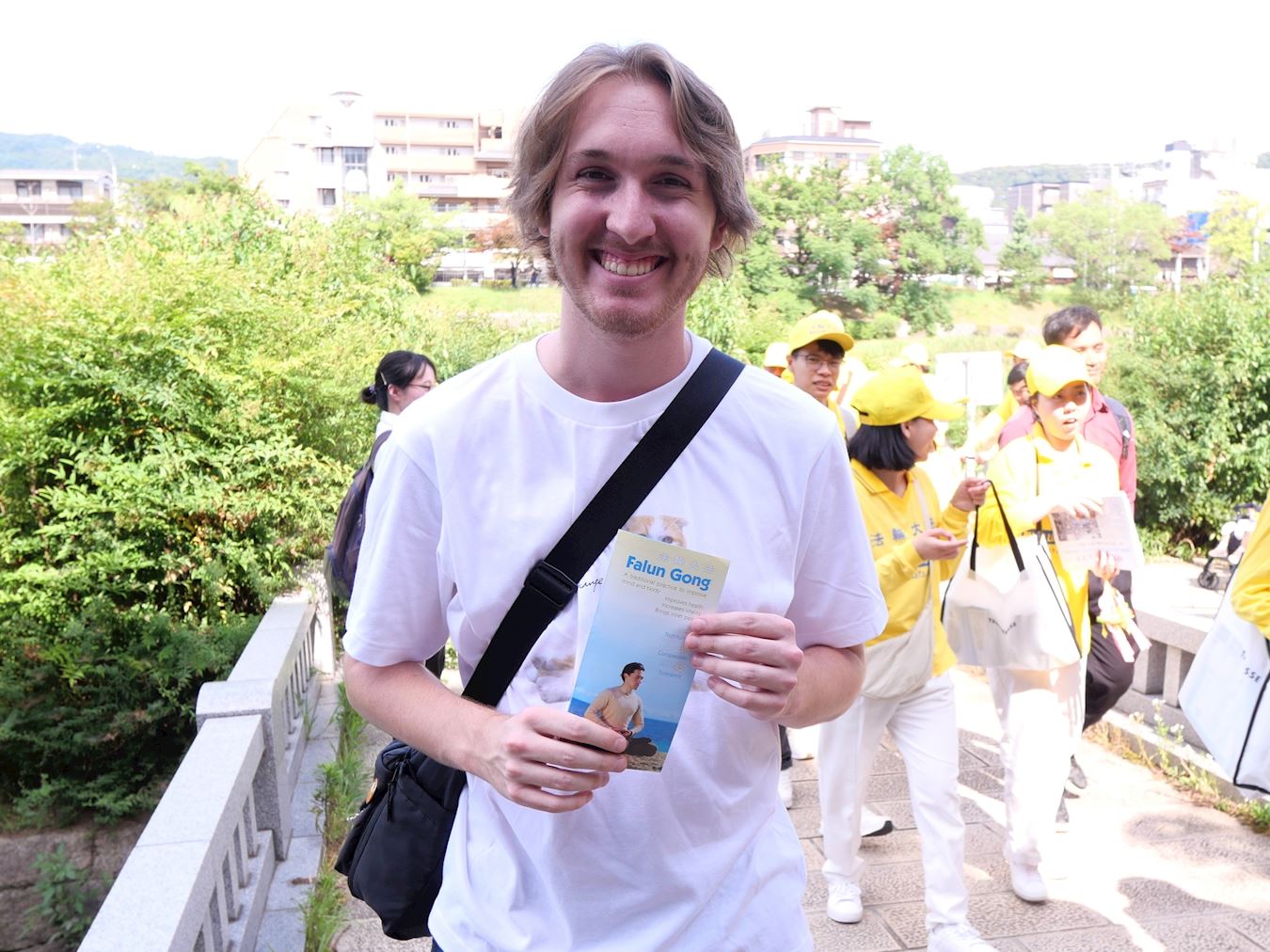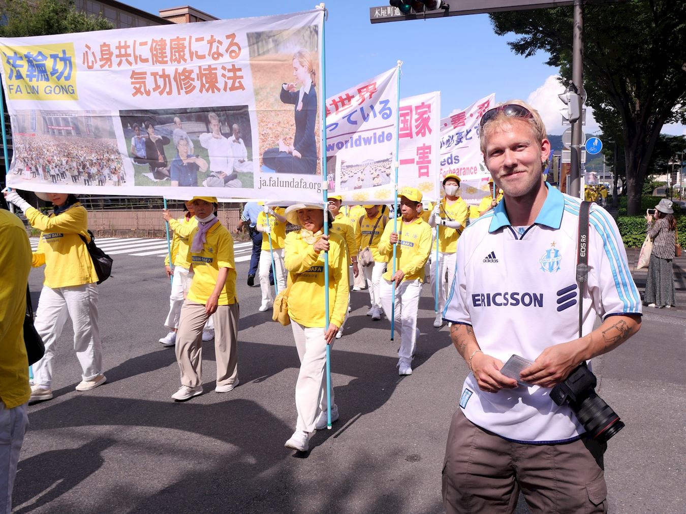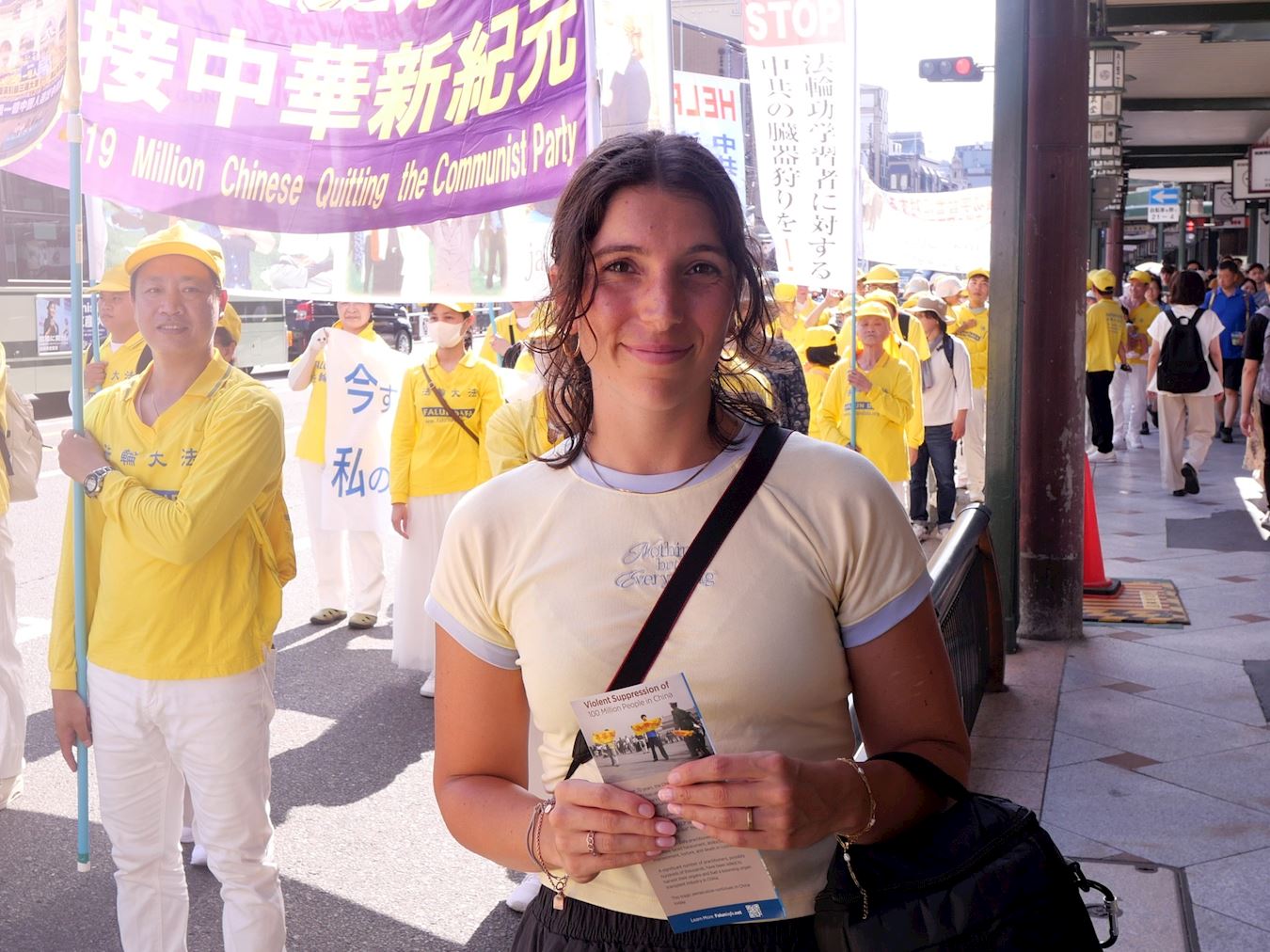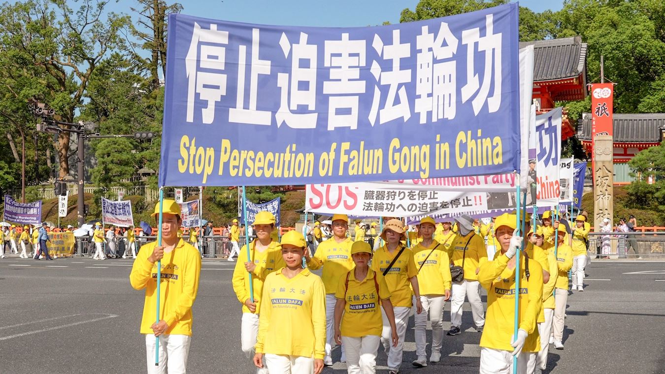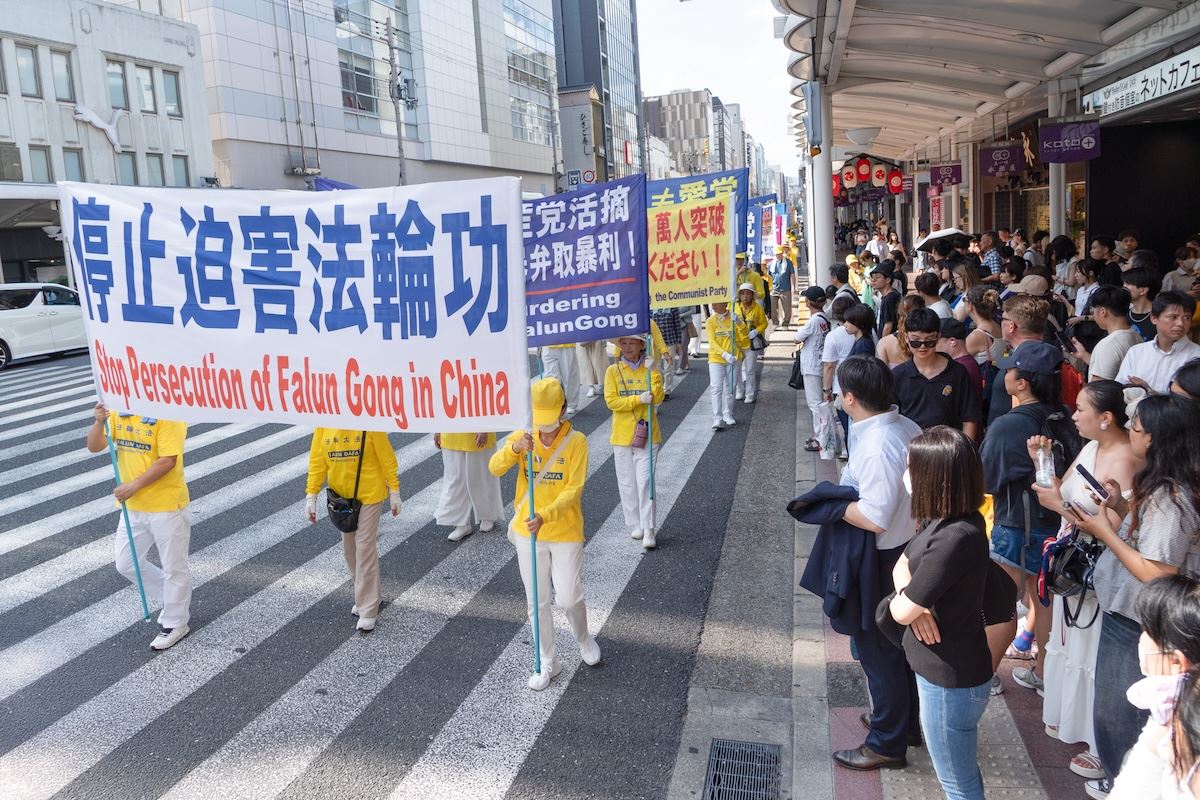 Praktikanti Falun Dafa održali su marš u gradu Kyotu 12. srpnja 2025. kako bi obilježili godišnjicu svog mirnog prosvjeda protiv progona koji sprovodi Komunistička partija Kine (KPK) od 20. srpnja 1999., i kako bi pozvali na njegov prekid.