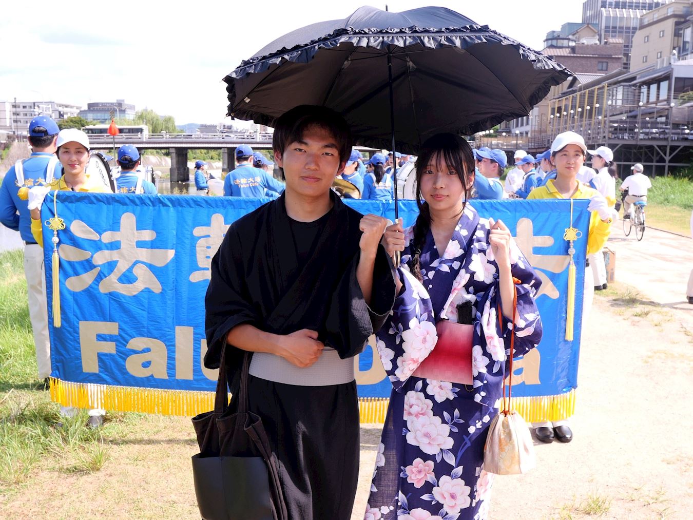 Marš je održan za vrijeme Gion Festivala, jednog od tri najveća festivala u Japanu. Ljudi iz cijelog Japana i turisti došli su proslaviti veliki festival, a Kyoto je bio vrlo živ. Marš je predvodio orkestar Tian Guo Marching Band, započeo je kod kyotskog mosta Oike i prošao je pored nekoliko turističkih atrakcija u Kyotu, privlačeći pažnju javnosti i primajući dobar odaziv. Bilo je mnogo turista iz Europe i SAD-a, a mnogi su izvadili svoje mobilne telefone kako bi snimili marš. Oni koji su već znali da KPK progoni Falun Dafa poticali su praktikante da nastave svoje napore u razotkrivanju brutalnosti KPK.