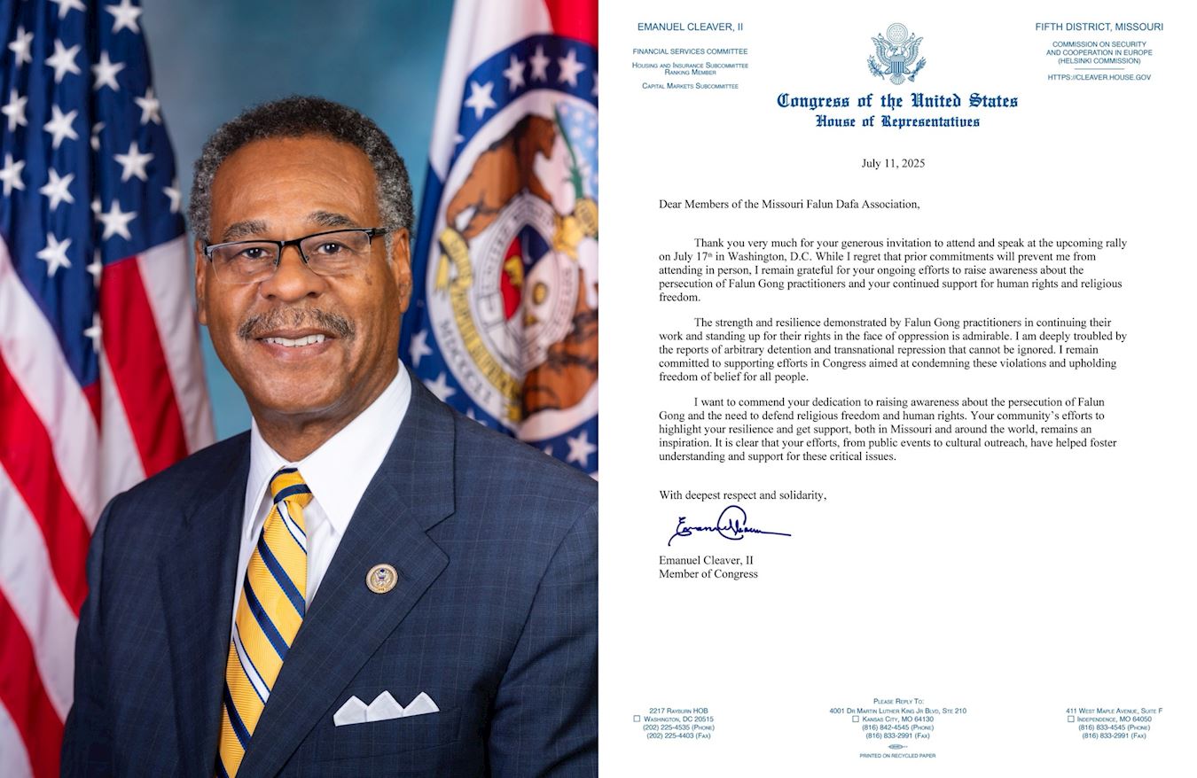 Zastupnik Emanuel Cleaver, II je u svom pismu napisao: „Iako žalim što će me prethodne obaveze spriječiti da lično prisustvujem, ostajem zahvalan na vašim stalnim naporima da podignete svijest o progonu praktikanata Falun Gonga i vašoj kontinuiranoj podršci ljudskim pravima i vjerskoj slobodi.