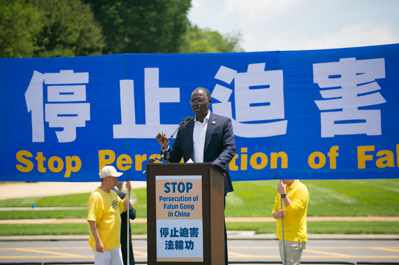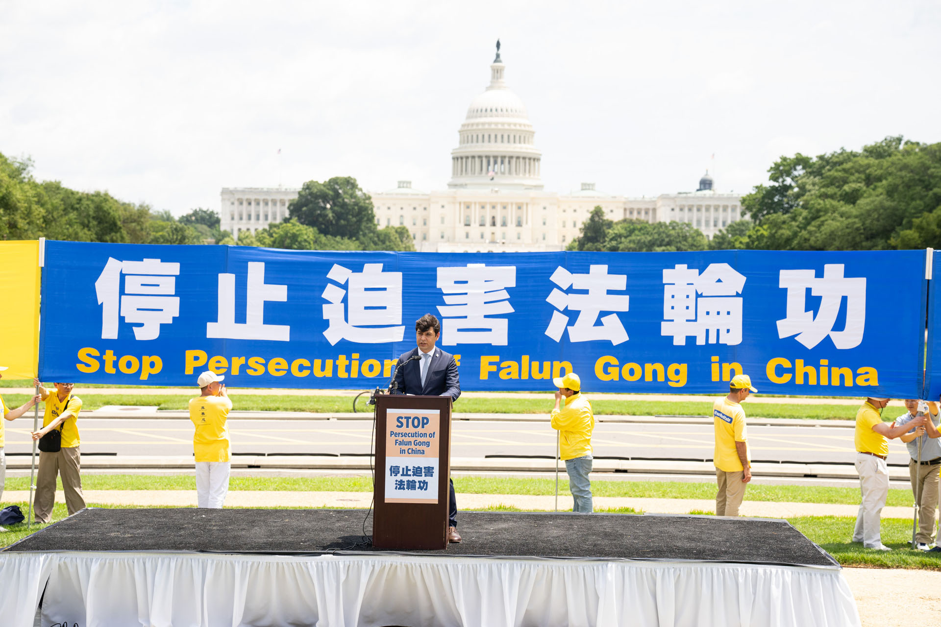 Mohamed Elsanousi, komesar Komisije Sjedinjenih Država za međunarodnu vjersku slobodu (USCIRF), je došao na miting da pokaže svoju podršku praktikantima i rekao: „Iz godine u godinu, ponavljaju se mučne priče o zlostavljanju praktikanata Falun Gong-a od strane kineske vlade: nadzor, uznemiravanje, novčane kazne, pritvaranja, zatvaranja, mučenja, medicinska nebriga, nehumani tretman, pa čak i smrt.