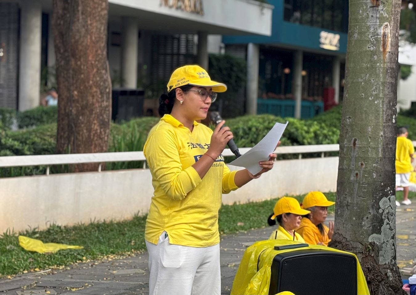 Tokom mitinga, Sastrani, portparolka Indonežanskog Udruženja Falun Dafe, izjavila je: „Komunistička partija Kine ne samo da proganja Falun Gong u Kini više od 26 godina, već i zloupotrebljava svoje diplomatske kanale i državna sredstva za kupovinu uticaja na globalnom nivou. Oni koriste medije i uticajne ličnosti na društvenim mrežama u inostranstvu da šire lažne narative i pokreću kampanje klevetanja protiv Falun Gonga i njegovog osnivača. Cilj je da se pojačaju dezinformacije i potisne istina.“