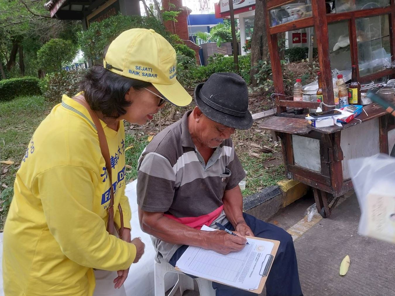 Čovek iz Kine koji radi u tom području posmatrao je aktivnosti i izrazio iznenađenje kada je saznao da se Falun Gong praktikuje u Indoneziji. Takođe je izrazio podršku mirnom mitingu praktikanata. „Bio sam zadivljen kada sam video praktikante kako ovde rade vežbe. Nisam znao da se Falun Gong praktikuje u ovoj zemlji,“ rekao je.