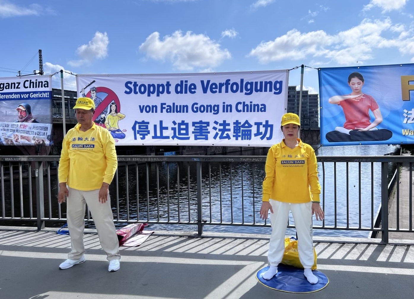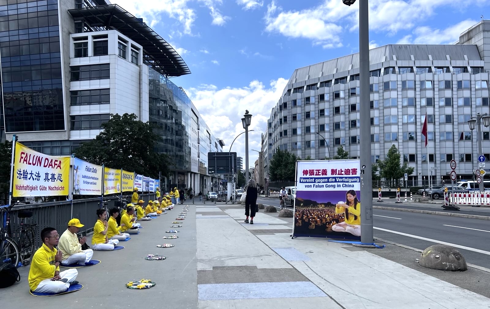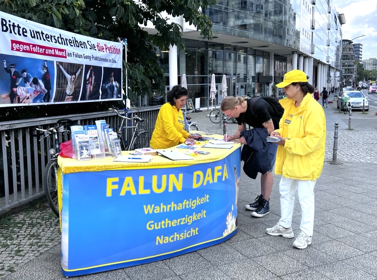 Progon Falun Gonga od strane kineskog režima traje već 26 godina. Od 17. do 23. jula ove godine, praktikanti Falun Gonga u Nemačkoj okupili su se ispred kineske ambasade u Berlinu i ispred kineskih konzulata u Minhenu, Frankfurtu i Diseldorfu. Držali su transparente, prikupljali potpise za peticije i predali pismo u kojem pozivaju Komunističku partiju Kine (KPK) da odmah okonča progon koji je u toku. Praktikanti su prolaznicima objašnjavali detalje progona i razotkrivali zločin žetve organa od živih praktikanata u Kini, koji su zatvoreni jer odbijaju da se odreknu svoje vere.