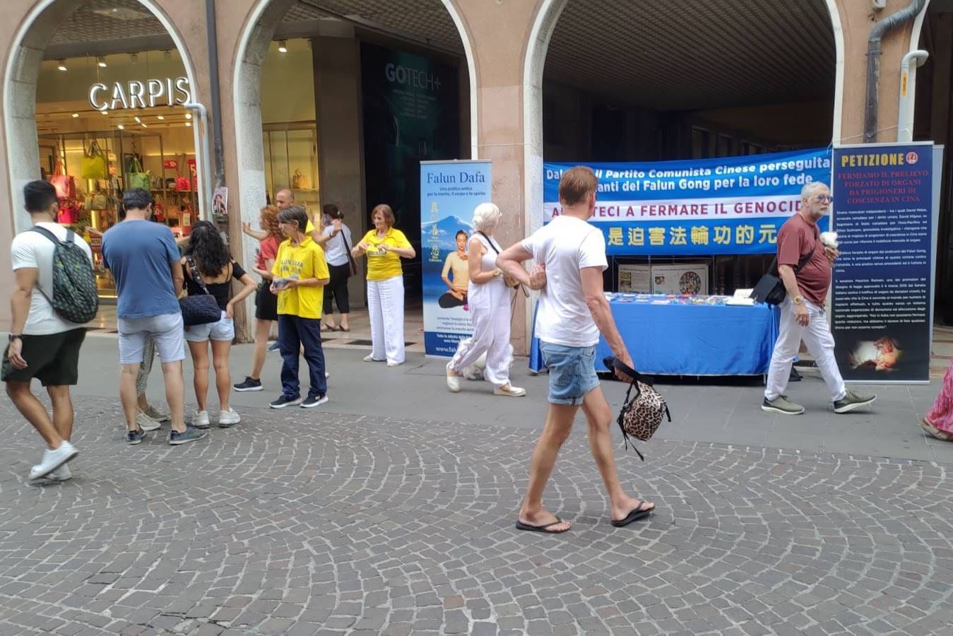Praktikanti iz severoistočne Italije održali su aktivnosti u Padovi za vikend 19. jula i u Trevizu za vikend 26. jula kako bi ljudima rekli o decenijama dugoj represiji KPK usmerenoj na Falun Dafa praktikante.