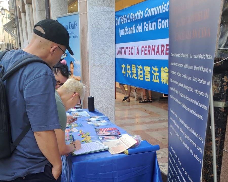 Od 19. do 26. jula 2025, praktikanti u Italiji održali su događaje u nekoliko gradova kako bi ljudima ukazali kako Komunistička partija Kine (KPK) progoni Falun Dafu. Pozvali su sve sektore društva da im se pridruže u naporima da se okonča brutalni progon od strane KPK koji traje već 26 godina. Ljudi su izrazili podršku miroljubivim naporima praktikanata da razotkriju progon.