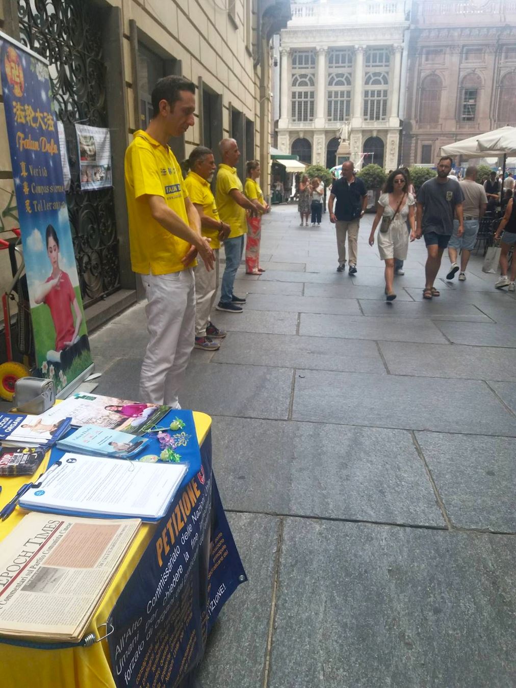 U nedelju, 20. jula, praktikanti su demonstrirali vežbe Falun Dafe u centru Torina i delili materijale za objašnjavanje istine. Događaj je privukao mnoge stanovnike i turiste, a neki su tražili više informacija.
