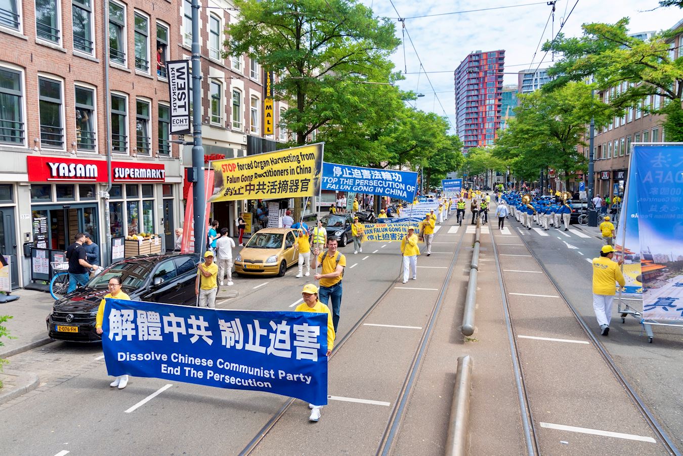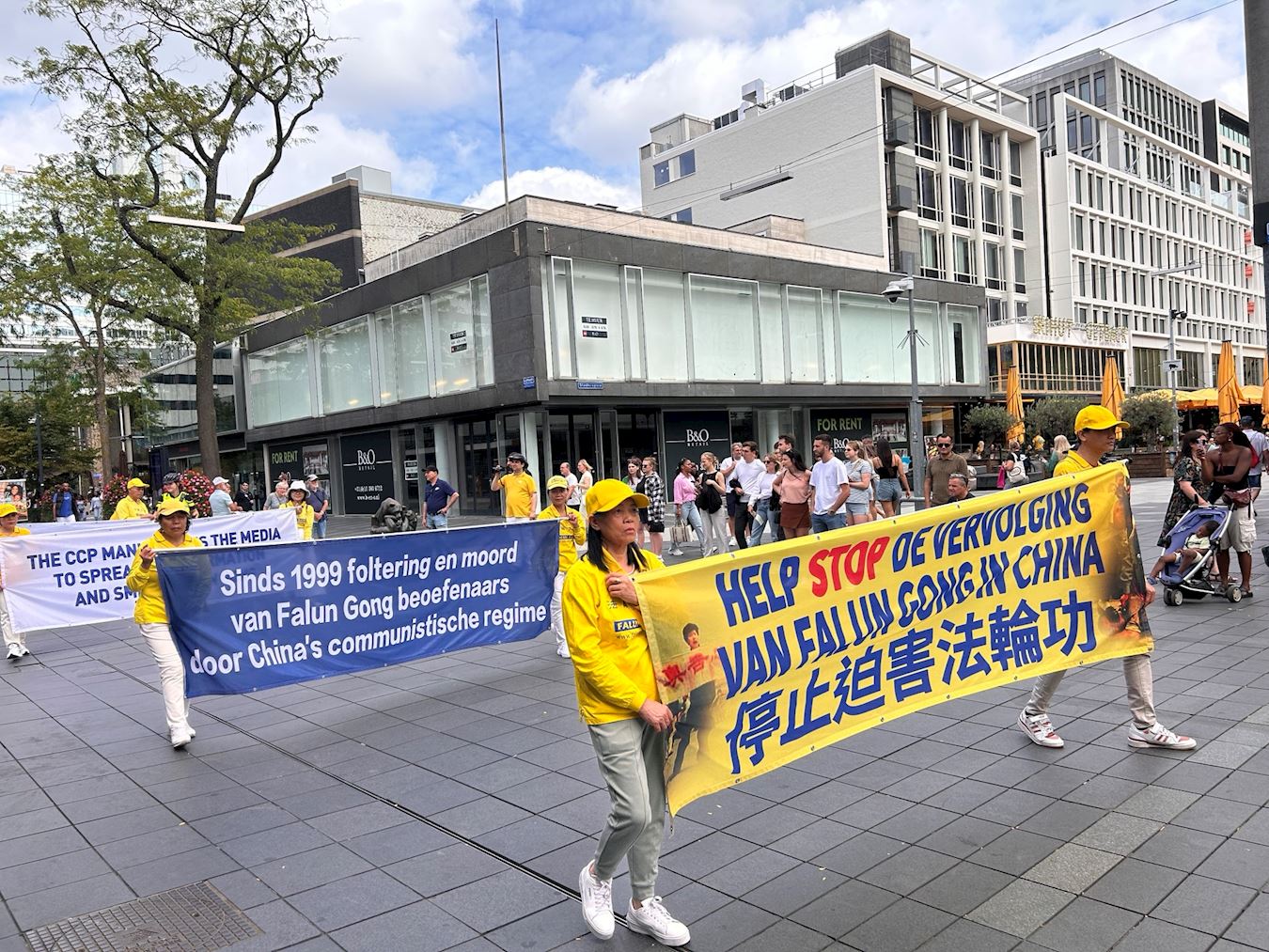 Tog dana održani su miting i dva marša. Krenuvši sa trga Šauburgplajn, u srcu Roterdama, predvođeni Tian Guo Marching Bandom, praktikanti su marširali pored Kineske četvrti, Van Oldenbarneveltplaca i Binenvegplajna pre nego što su se vratili na početnu tačku. Marš je privukao pažnju mnogih ljudi.