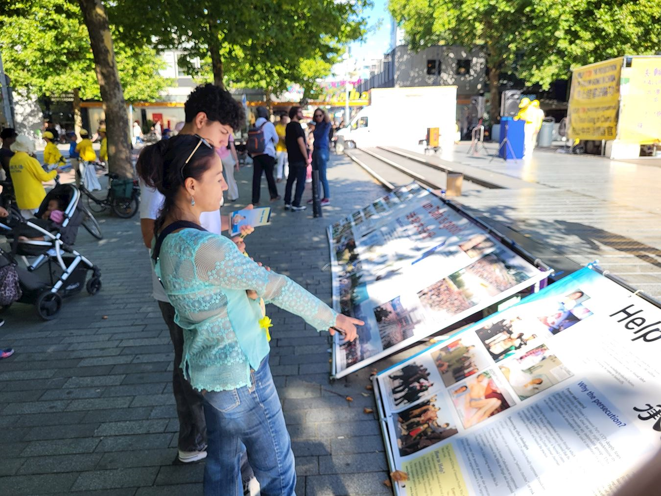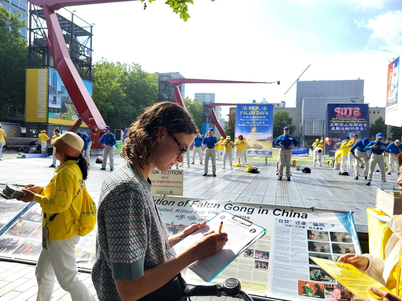 Zelda je prišla praktikantima za više informacija nakon što je pročitala panoe. Zatim je potpisala peticiju za zaustavljanje prisilne žetve organa. Rekla je da ranije nije bila svesna kršenja ljudskih prava. Bila je šokirana i uplašena nakon što je videla fotografije praktikanata u Kini koji su mučeni. Rekla je: „Ne mogu da zamislim da se tako nešto zaista može dogoditi. To je užasno.“ Kada su joj praktikanti rekli da su Istinitost, Blagost, Trpeljivost osnovni principi Falun Dafe, Zelda je pohvalila ove principe i rekla: „Predivno. Najbolje je sprovoditi ih kroz dela.“