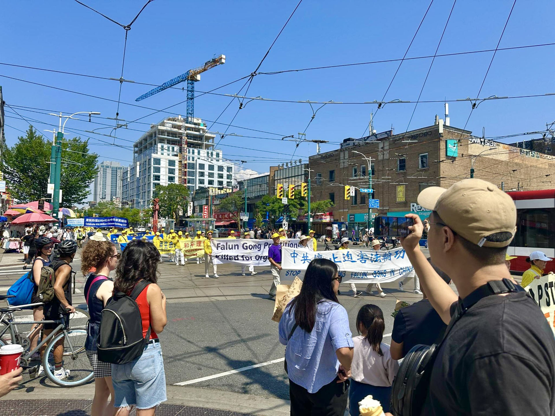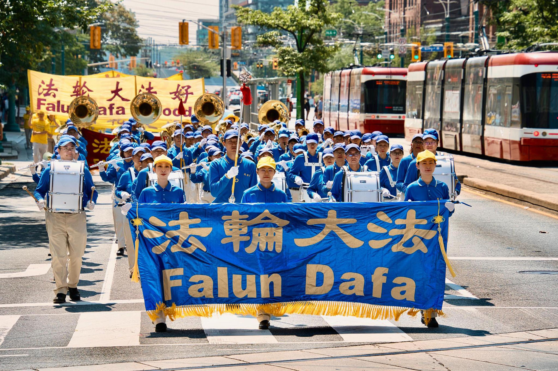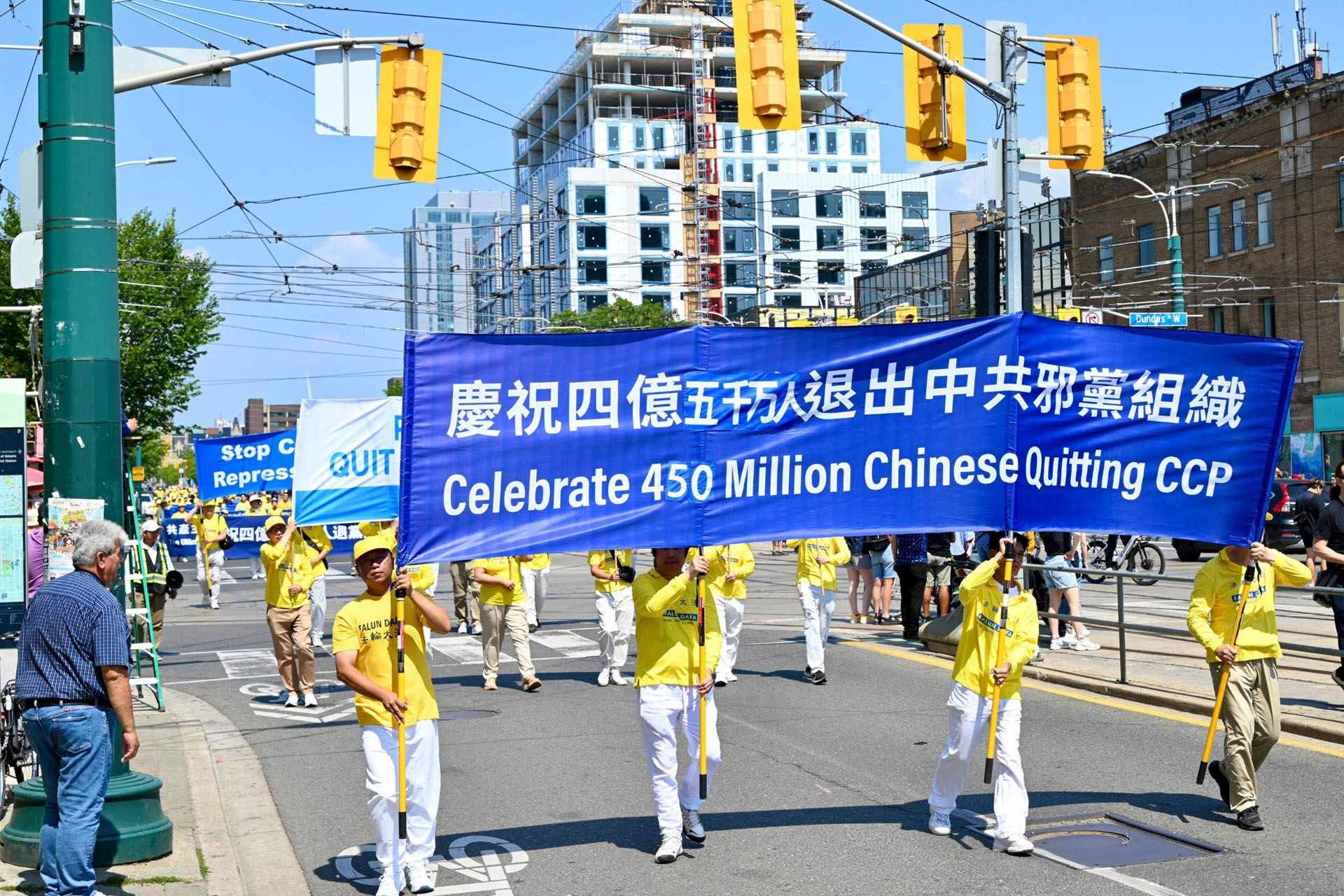 Praktikanti Falun Dafa u Torontu održali su skup u parku Clarence Square u blizini Kineske četvrti 16. kolovoza 2025. kako bi čestitali 450 milijuna Kineza koji su istupili iz Komunističke partije Kine (KPK) i njezinih omladinskih organizacija. Odali su počast svima koji su hrabro donijeli ovaj izbor i pozvali su sve sektore kanadskog društva da pomognu u zaustavljanju transnacionalne represije KPK nad praktikantima Falun Dafa koji žive u Kanadi. Ljudi iz svih sfera života govorili su na skupu, izražavajući svoju podršku i zahvalnost za mirni prosvjed praktikanata Falun Dafa, posebno u pomaganju javnosti da shvati pravu prirodu KPK.