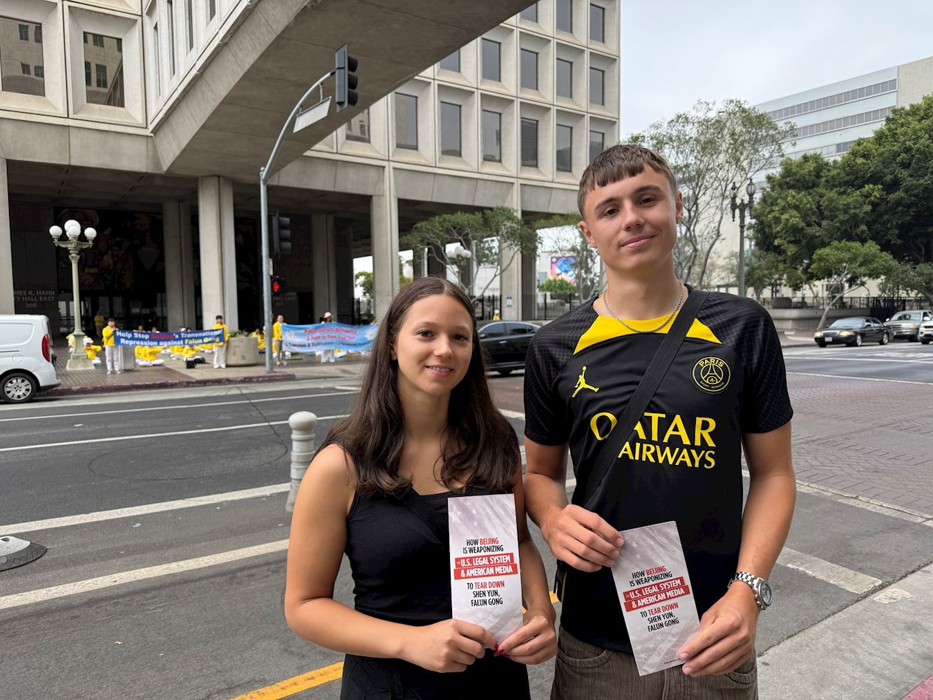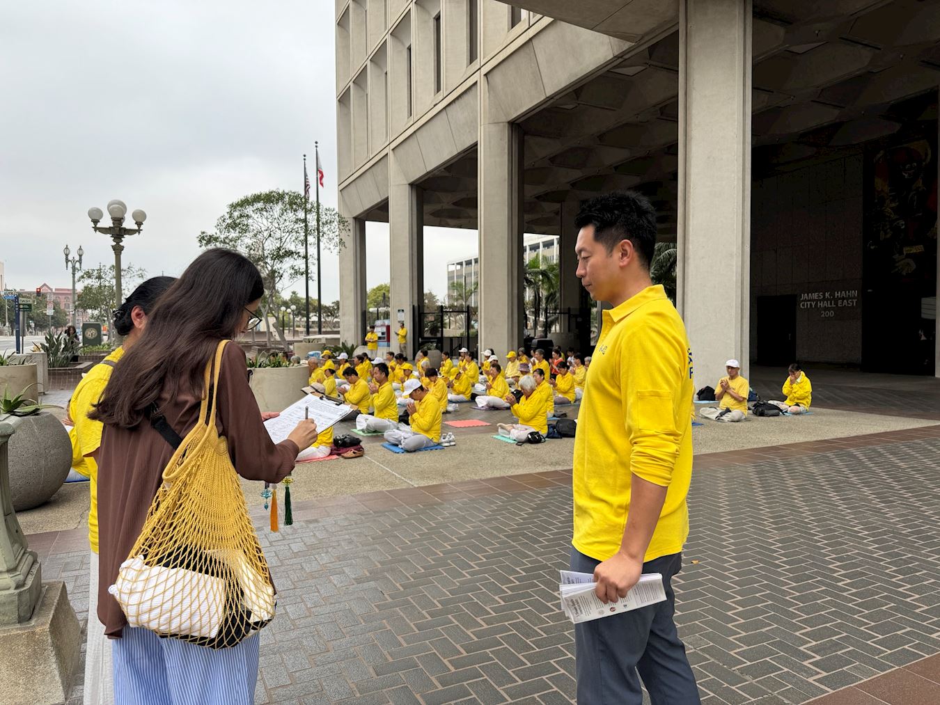 Frensis Liu, praktikantkinja Falun Gonga koja je pomogla u organizaciji događaja, rekla je: „Izražavamo naš miran apel ispred Gradske većnice u Los Anđelesu jer KPK eskalira progon Falun Gonga i proširila je svoj progon na Sjedinjene Države. KPK zloupotrebljava američko pravosuđe i medije, koristeći rupe u američkoj demokratiji.“