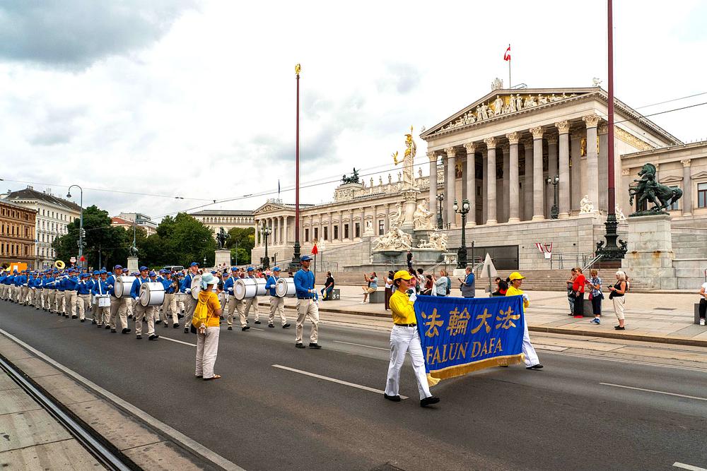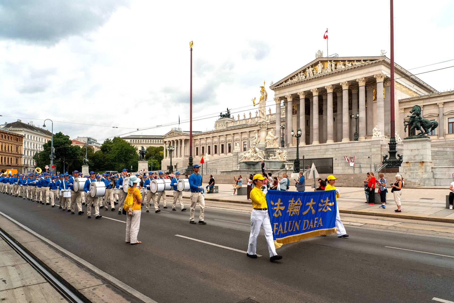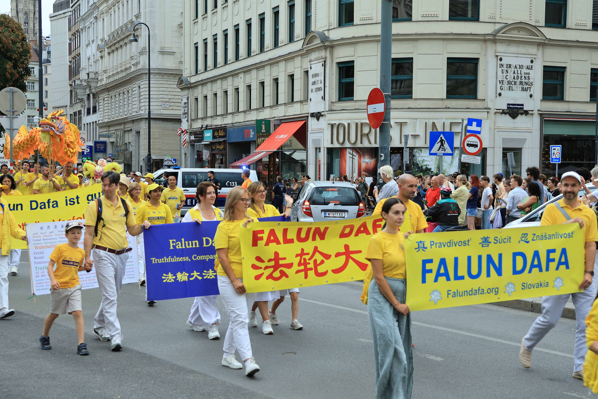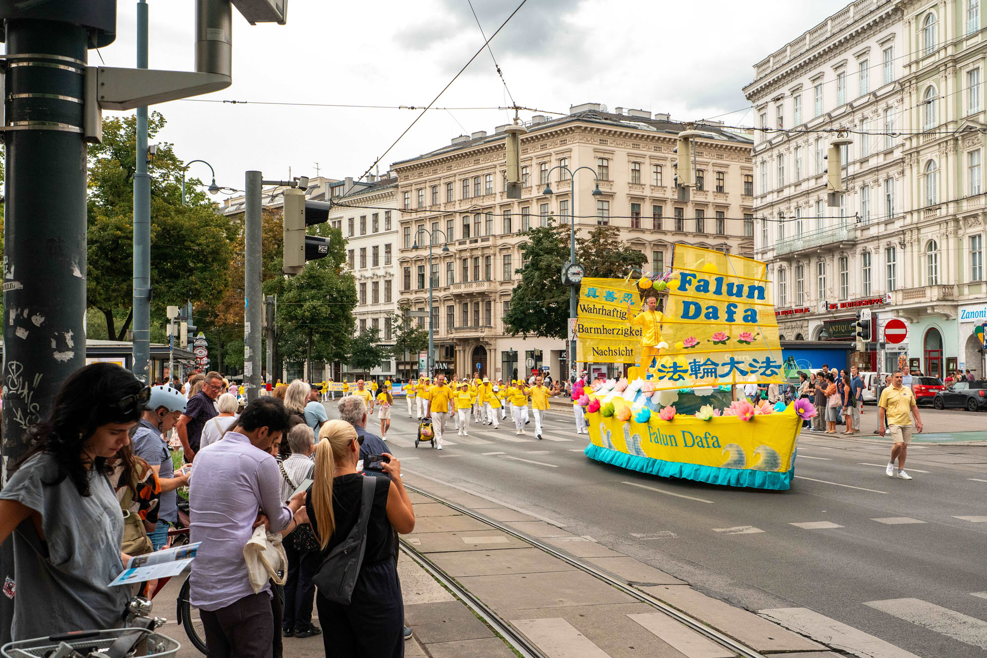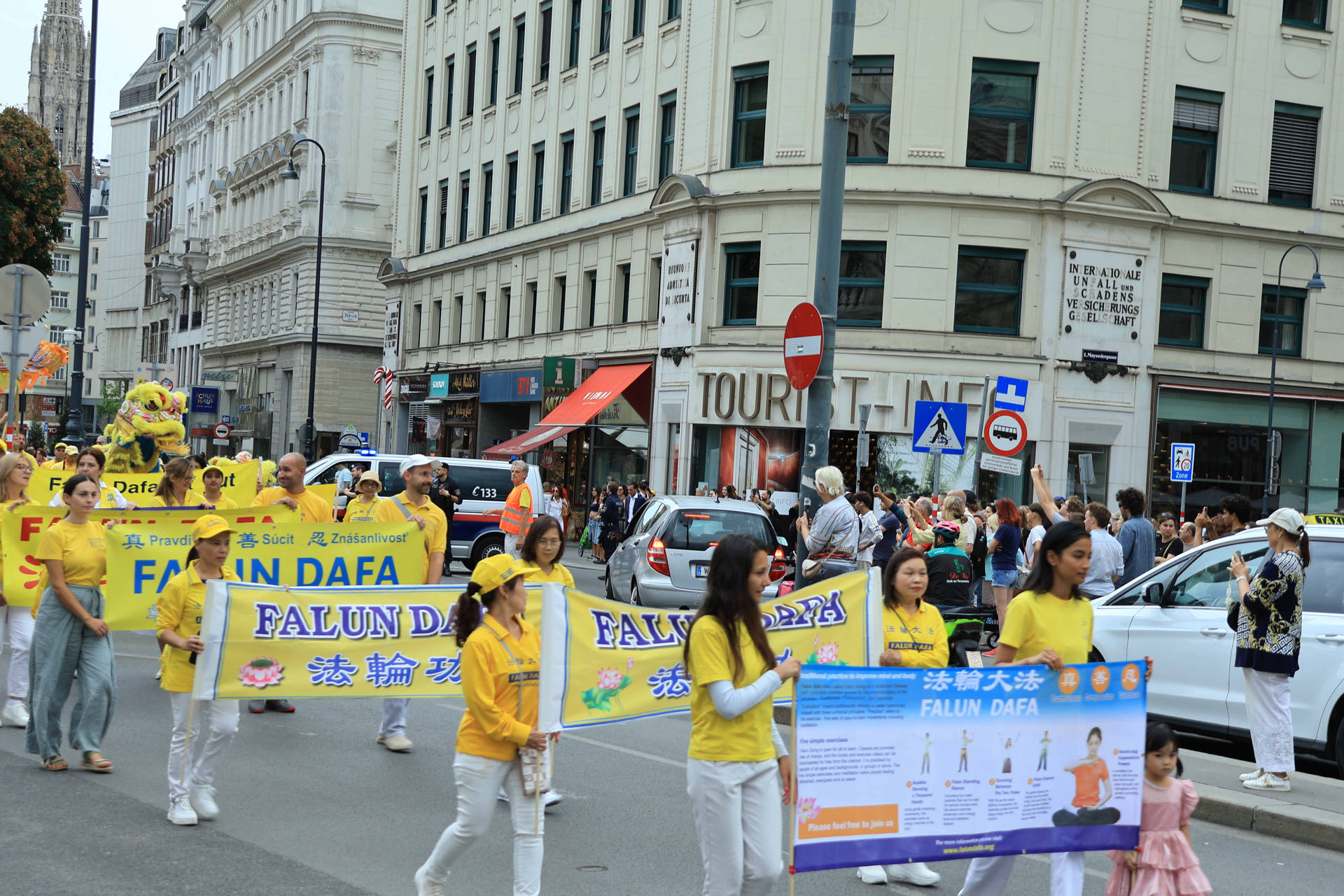 Osim što su ljudima govorili o dobrobitima Falun Dafa, putem plakata i govora na Helmut-Zilk-Platz-u, praktikanti su također objasnili kako KPK proganja praktikante 26 godina.