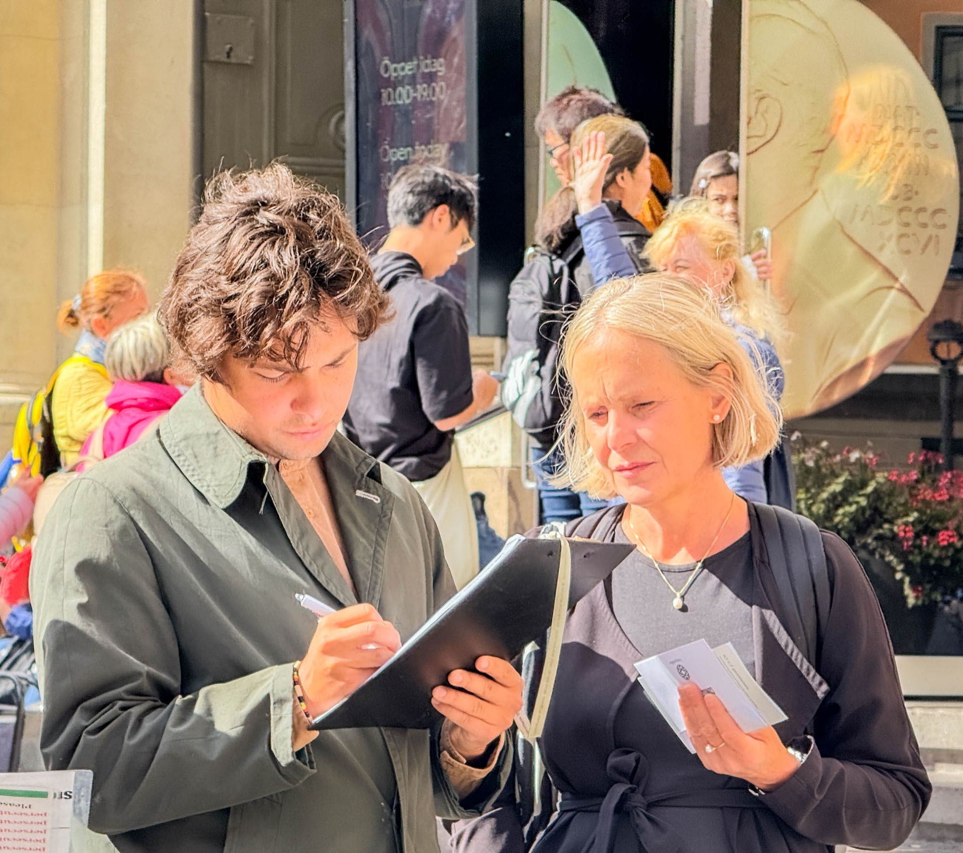 Jedne subote popodne, turistički vodič srednjih godina iz Italije čekala je svoju grupu kada joj je tabla privukla pažnju. Nakon što je pročitala sve informacije, pronašla je praktikanta i zatražila da potpiše peticiju. Zatim je rekla da želi da uzme dodatne kopije informativnih materijala.
