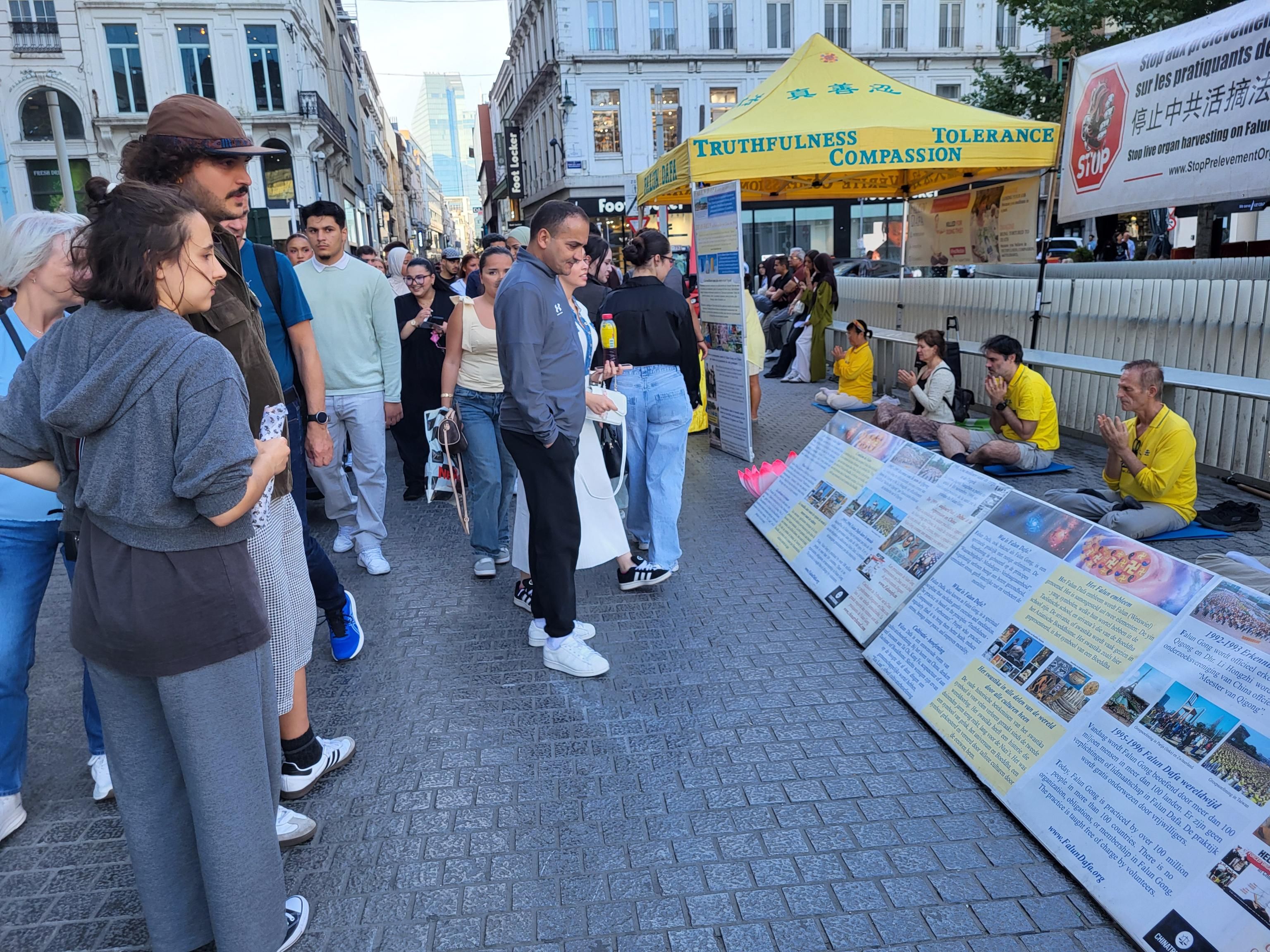 Tokom događaja u Briselu 8. septembra 2025. godine, praktikanti su ljudima govorili o progonu Falun Dafe od strane Komunističke partije Kine (KPK) i državnoj žetvi organa. Mnogi prolaznici su se zaustavili da pročitaju transparente i potpisali peticiju za okončanje kršenja ljudskih prava.