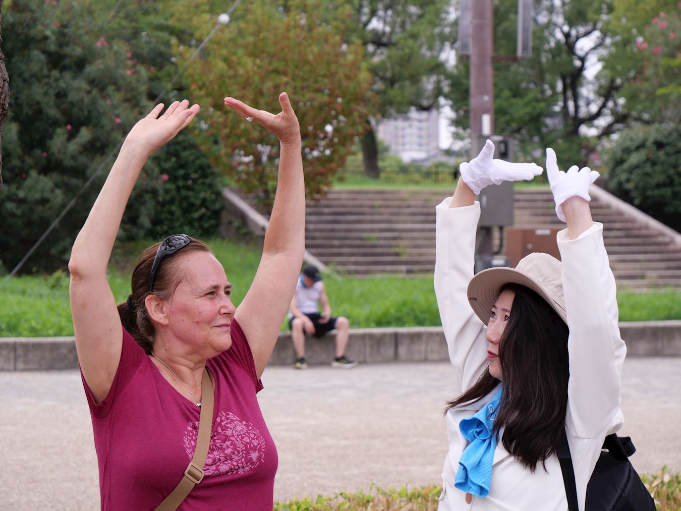 Prije parade, praktikanti Falun Dafa su se podijelili u male grupe kako bi radili vježbe na raznim turističkim atrakcijama. Kada je Ron iz Australije vidio grupno vježbanje u parku dvorca Osaka, tražio je više informacija i rekao je da se slaže sa principima Istinitosti-Dobrodušnosti-Tolerancije