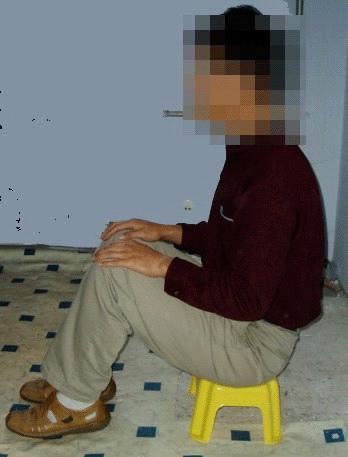 Gospodin Gao Baoliang, u pedesetim godinama, nije mogao ostati sjediti zbog nekroze bedrene kosti. Zatvorenik Hao Chenglong ga je stoga prisilio da se nasloni na zid dok sjedi na maloj stolici.