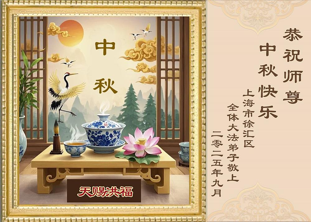 Falun Dafa praktikanti iz Šangaja s poštovanjem žele Učitelju Li Hongdžiju srećan Praznik sredine jeseni (18 čestitki)