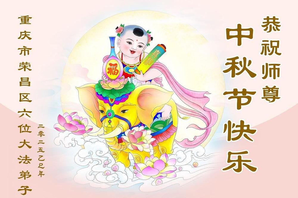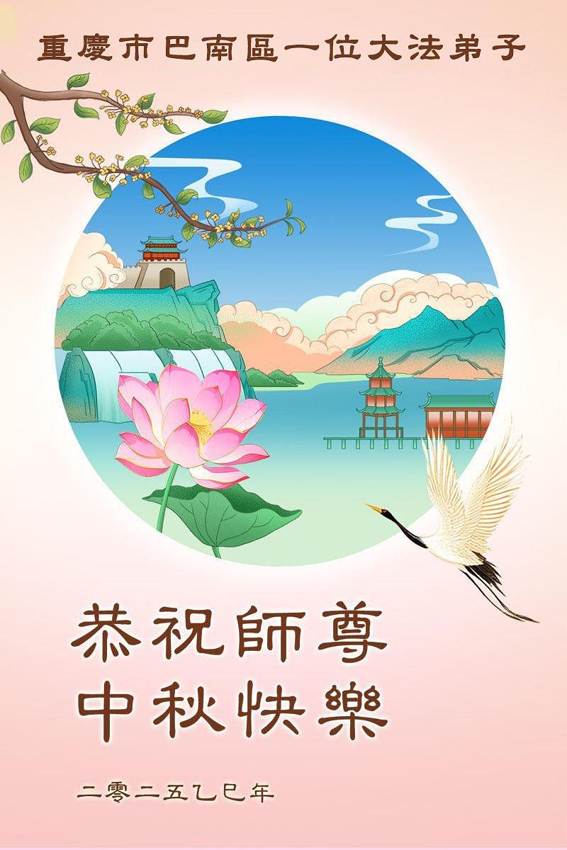 Falun Dafa praktikanti iz Čongkinga s poštovanjem žele Učitelju Li Hongdžiju srećan Praznik sredine jeseni (22 čestitke)