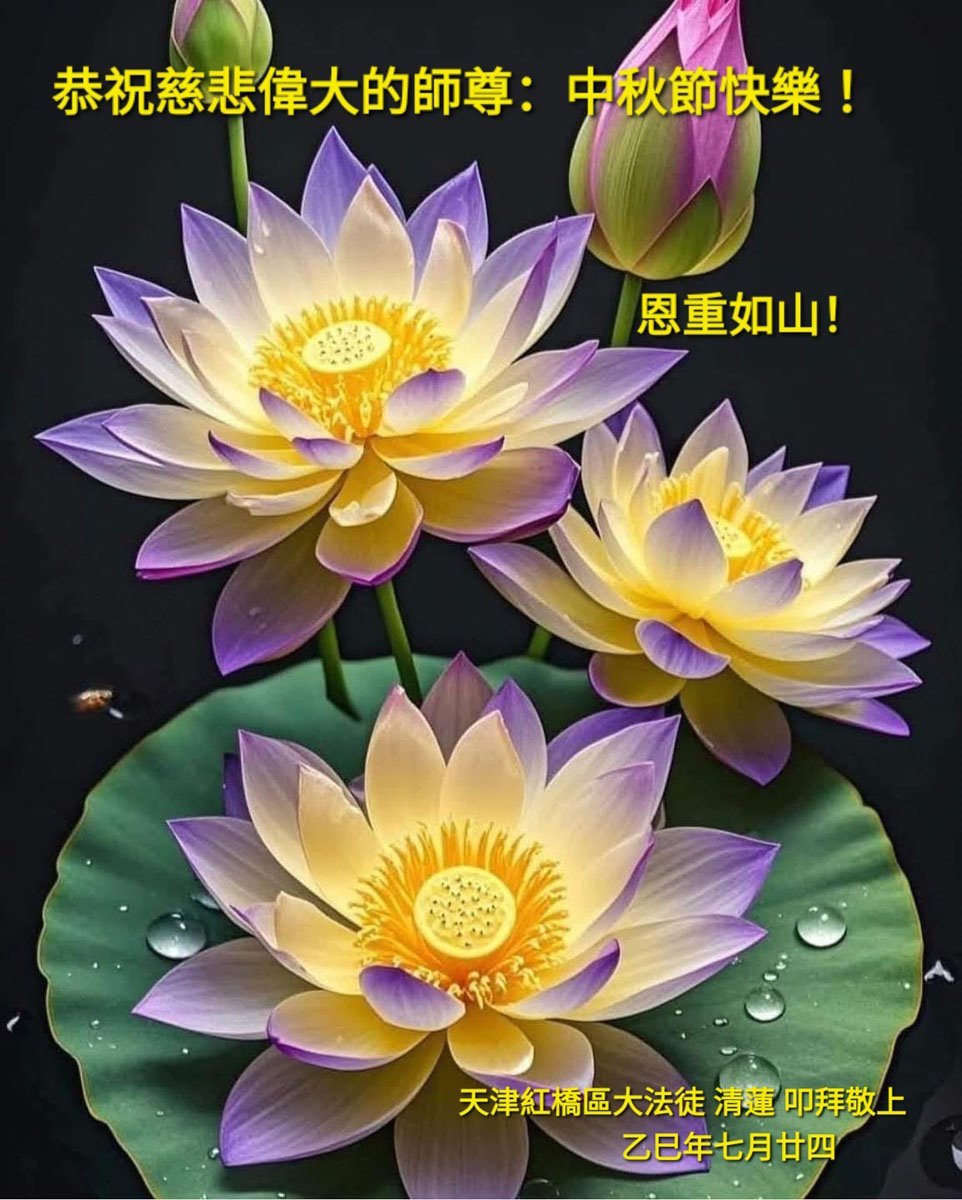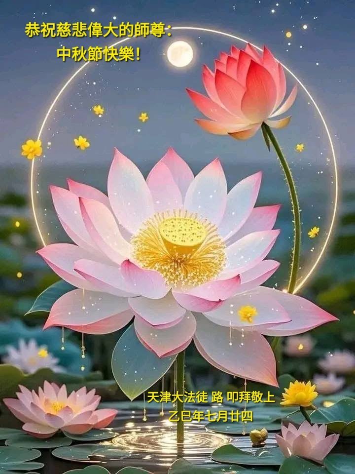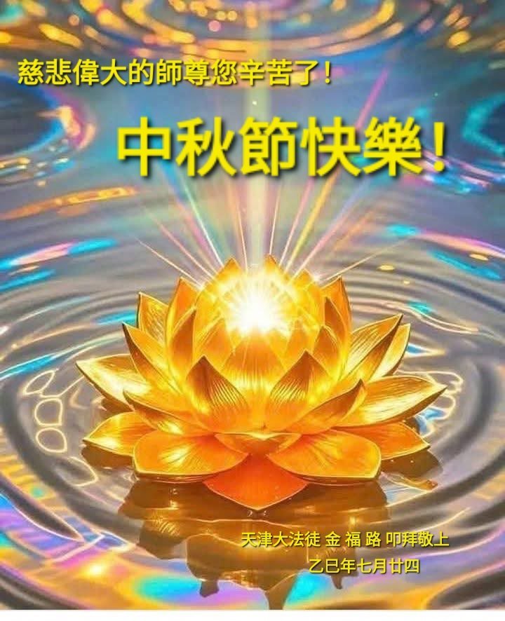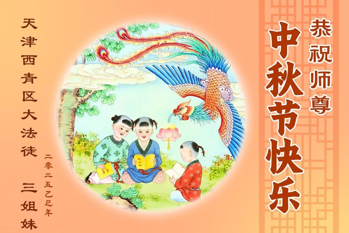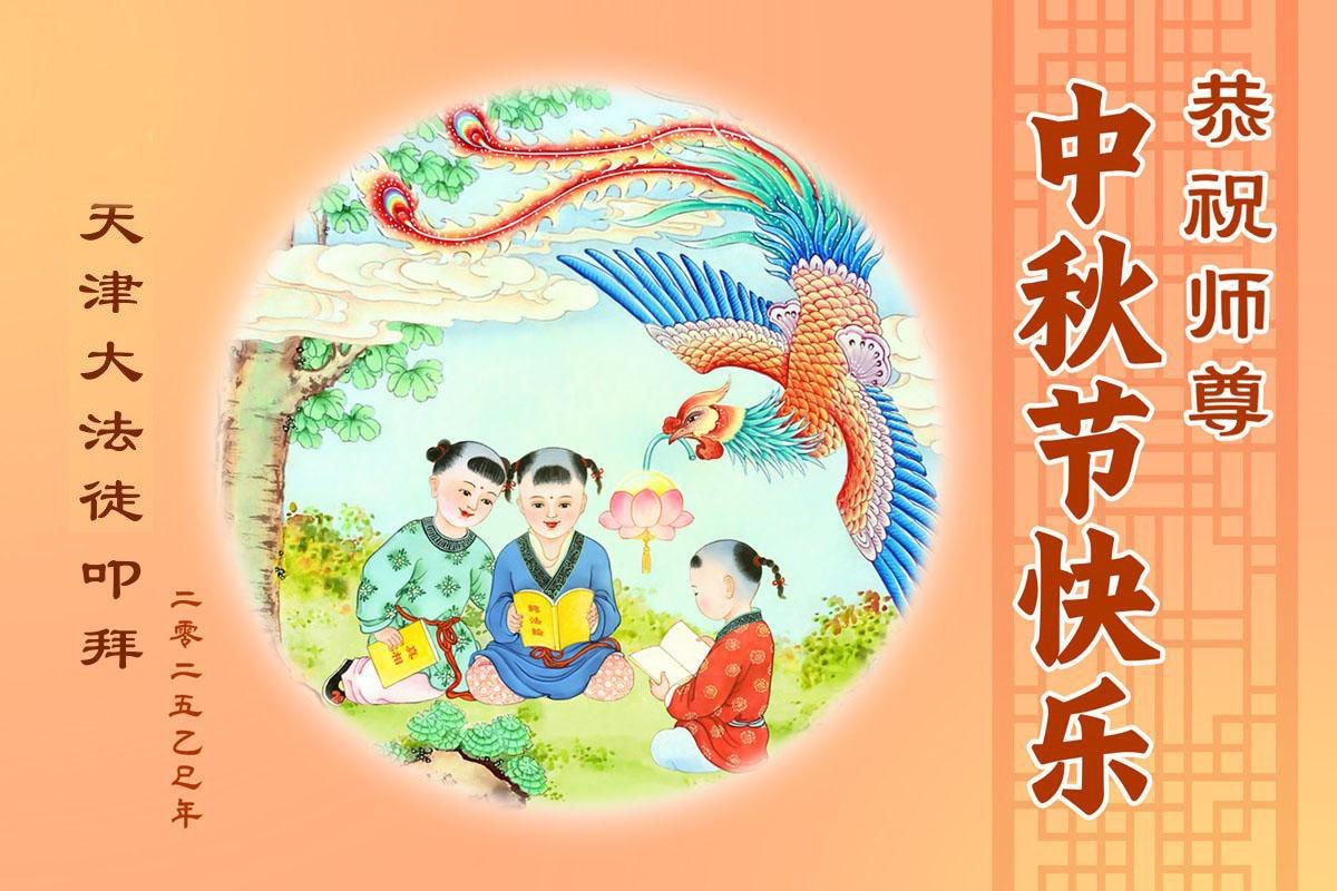 Falun Dafa praktikanti iz Tjenđina s poštovanjem žele Učitelju Li Hongdžiju srećan Praznik sredine jeseni (18 čestitki)