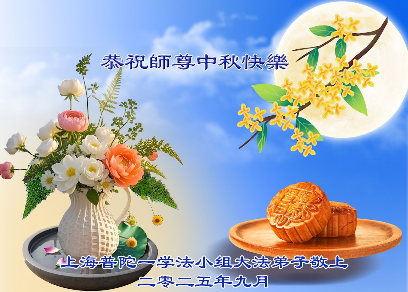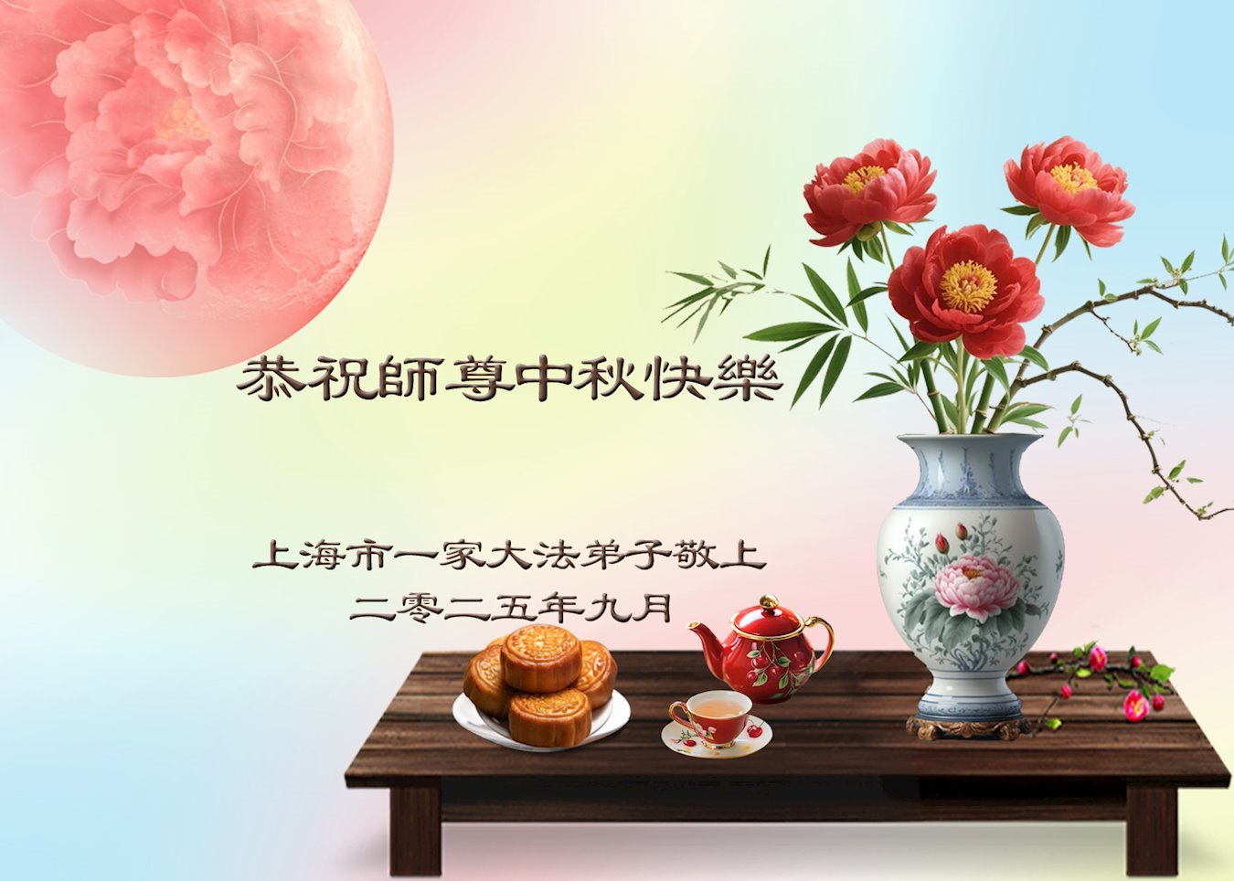 Falun Dafa praktikanti iz Šangaja s poštovanjem žele Učitelju Li Hongdžiju srećan Praznik sredine jeseni (19 čestitki)