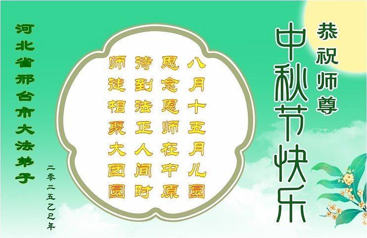 Falun Dafa praktičari iz provincije Hebej s poštovanjem žele Učitelju Li Hongdžiju srećan Praznik sredine jeseni (18 čestitki)