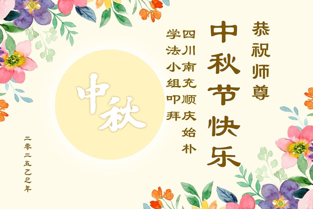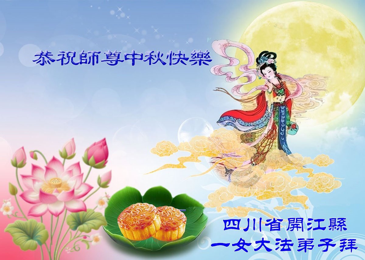 Falun Dafa praktikanti iz provincije Sičuan s poštovanjem žele Učitelju Li Hongdžiju srećan Praznik sredine jeseni (19 čestitki)