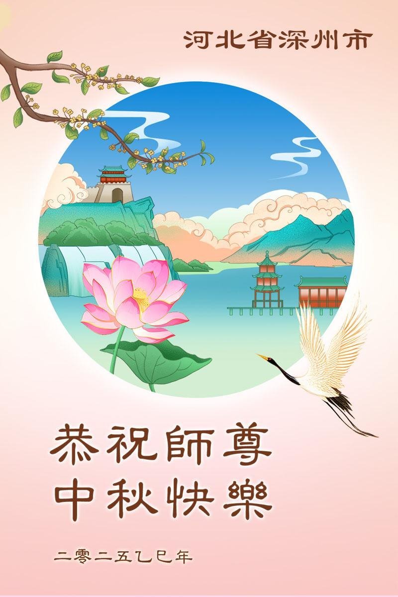 Falun Dafa praktikanti iz provincije Hebej s poštovanjem žele Učitelju Li Hongdžiju srećan Praznik sredine jeseni (19 čestitki)