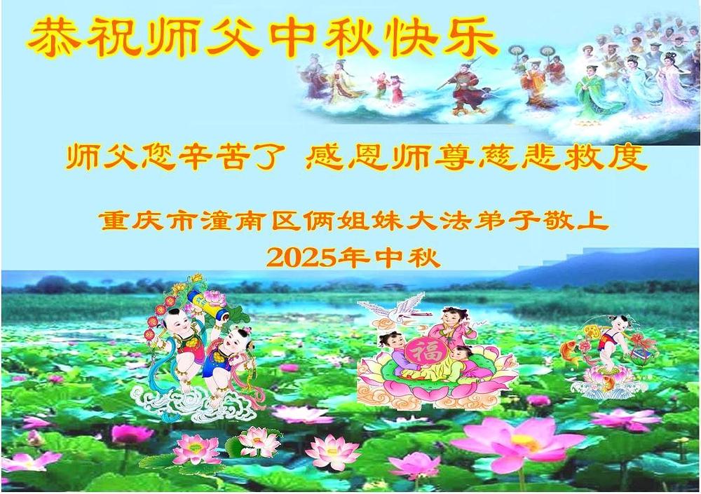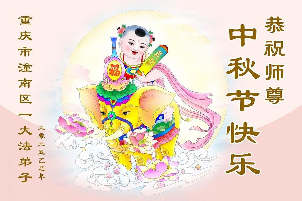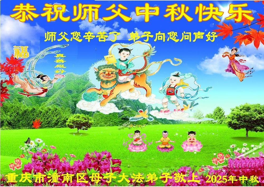 Falun Dafa praktikanti iz Čongkinga s poštovanjem žele Učitelju Li Hongdžiju srećan Praznik sredine jeseni (18 čestitki)