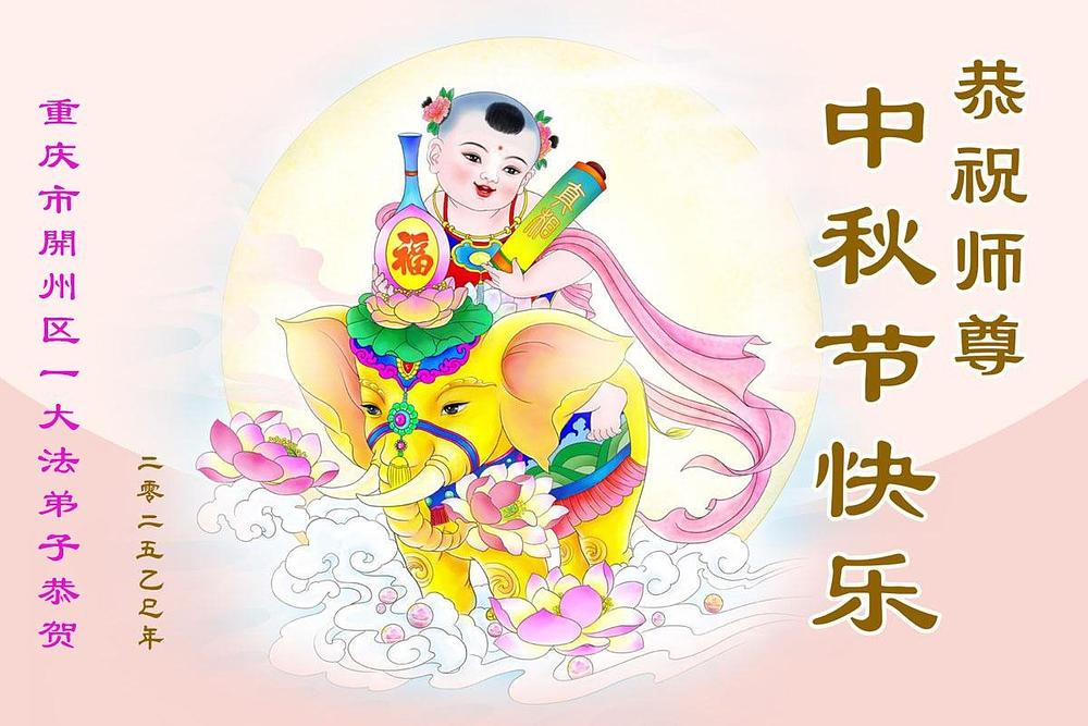 Falun Dafa praktikanti iz Čongkinga s poštovanjem žele Učitelju Li Hongdžiju srećan Praznik sredine jeseni (18 čestitki)