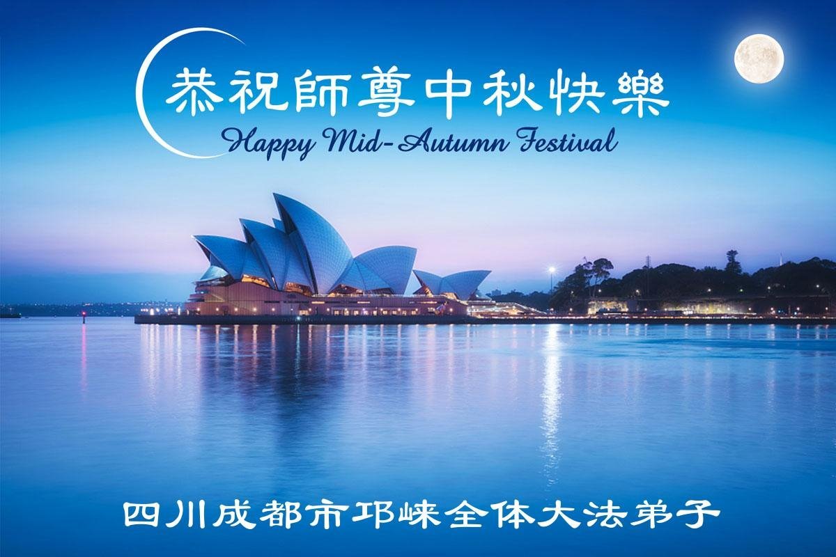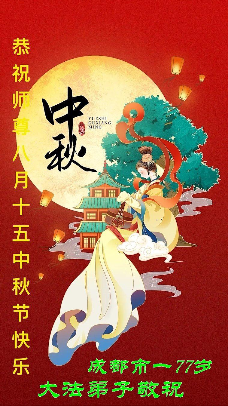 Falun Dafa praktikanti iz grada Čengdua s poštovanjem žele Učitelju Li Hongdžiju srećan Praznik sredine jeseni (18 čestitki)