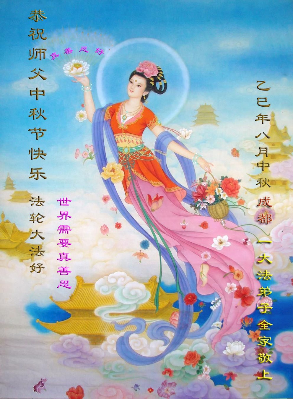 Falun Dafa praktičari iz grada Čengdua s poštovanjem žele Učitelju Li Hongdžiju srećan Praznik sredine jeseni (19 čestitki)
