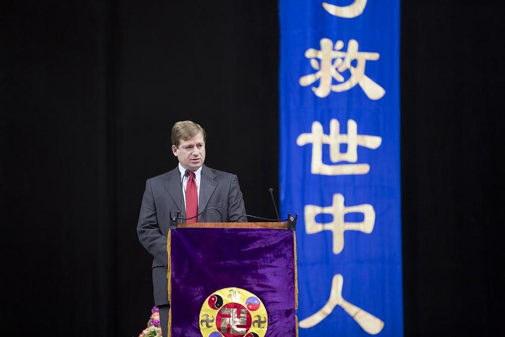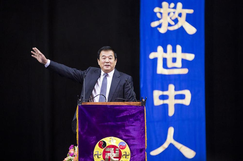 Učitelj je u konferencijsku dvoranu stigao u jutro. Dafa učenici u publici su ustali i gromoglasnim aplauzom puni poštovanja i entuzijazma pozdravili Učitelja. Učitelj je učenje Fa završio oko 1 čas po podne, a učenici su ponovno ustali na noge kako bi ga vidjeli i ponovno gromoglasno aplaudirali izražavajući tako svoju duboku zahvalnost.
