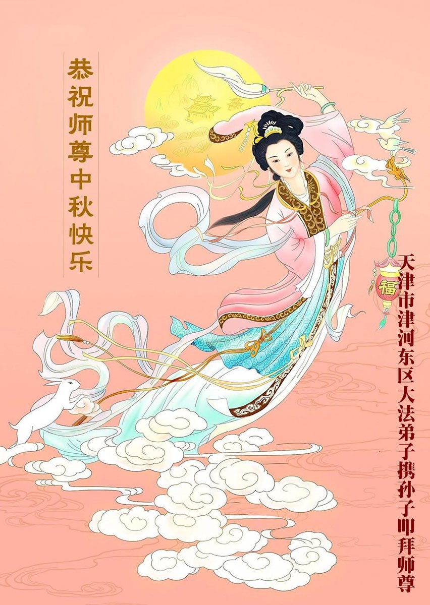 Falun Dafa praktikant iz Tjenđina s poštovanjem žele Učitelju Li Hongdžiju srećan Praznik sredine jeseni (19 čestitki)