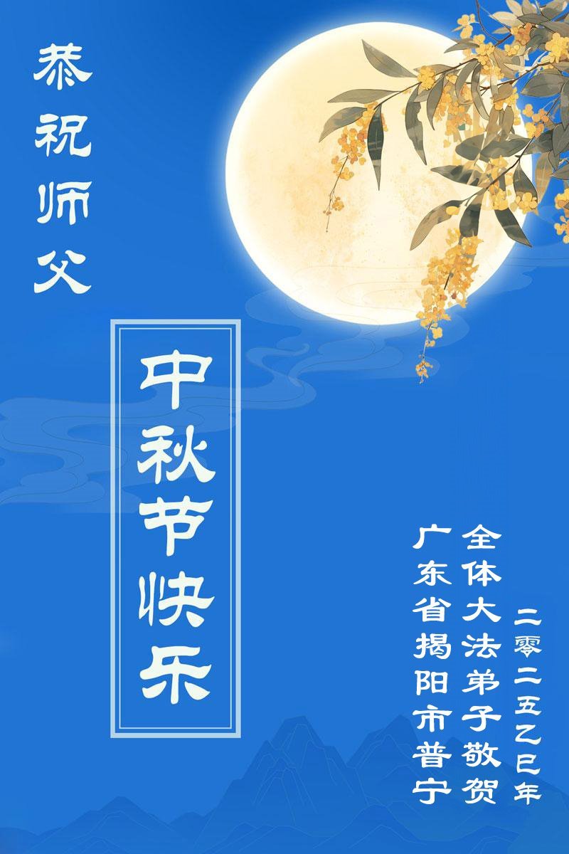 Praktikanti Falun Dafe u provinciji Guangdong s poštovanjem žele Učitelju Li Hongdžiju srećan Praznik sredine jeseni (18 čestitki)