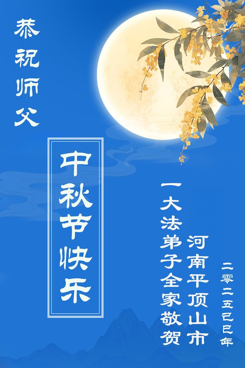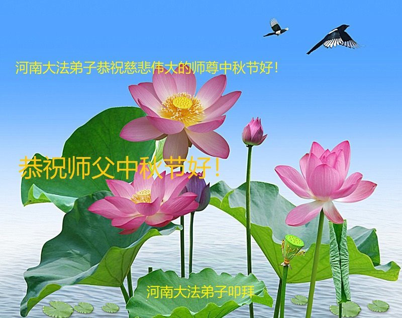 Praktikanti Falun Dafe u provinciji Henan s poštovanjem žele Učitelju Li Hongdžiju srećan Praznik sredine jeseni (19 čestitki)