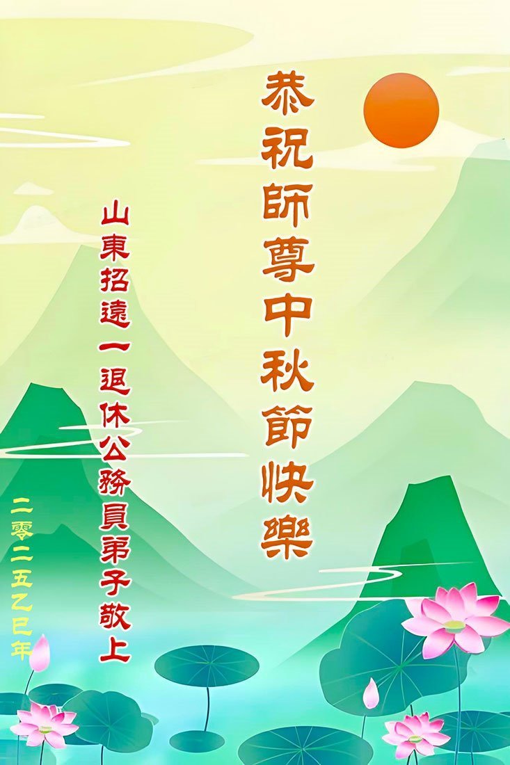 Uoči Praznika sredine jeseni 2025. godine, praktikanti Falun Dafe u kineskom vojnom sistemu, organima za sprovođenje zakona, tužilaštvima, sudovima i pravosudnim biroima, kao i u vladi, poslali su svoje čestitke kako bi poželeli Učitelju Li Hongdžiju, osnivaču Falun Dafe, srećan Praznik sredine jeseni.