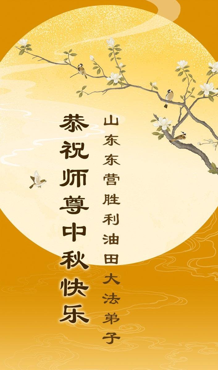 Praktikanti u gradu Dongjing i naftnom polju Šengli u provinciji Šandong žele Učitelju srećan Praznik sredine jeseni. Čestitka glasi: „Sa dolaskom Praznika sredine jeseni, mi, učenici, zahvalni smo na Učiteljevoj bezgraničnoj samilosti. Sledićemo Učiteljeva učenja i više ceniti ovu dragocenu priliku. Ići ćemo napred sa ispravnim mislima i hrabro i marljivo proći poslednju deonicu puta.“