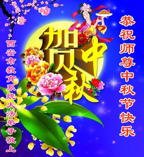 Praktikanti u gradu Bađong, provincija Sečuan, napisali su: „Saosećajni Učitelju, srećan Praznik sredine jeseni! Tokom 26 godina, pod Učiteljevim saosećajnim vođstvom i prosvetljenjem, mi, učenici, stigli smo do današnjeg dana. Pod Učiteljevom saosećajnom zaštitom, prevazišli smo svaku poteškoću. Zahvalni smo na Učiteljevom saosećajnom spasenju! Hvala Vam, Učitelju, na Vašoj saosećajnoj zaštiti! Moramo težiti izvrsnosti, dobro obavljati tri stvari, ispuniti naše predistorijske zavete i pratiti Učitelja da se vratimo u naš pravi dom! Klanjamo se Učitelju u zahvalnosti!”