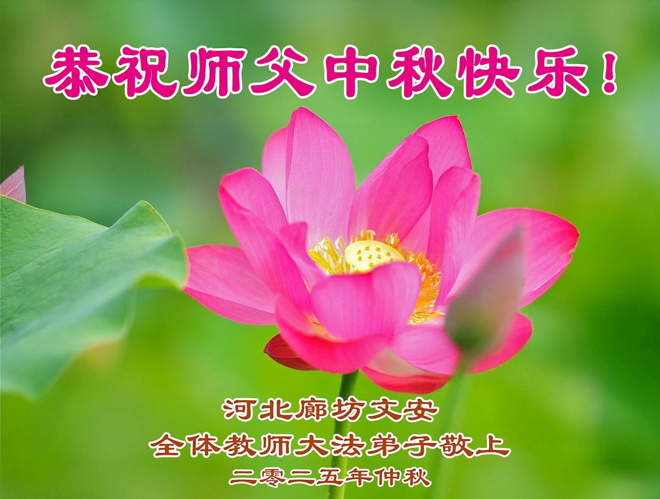Povodom proslave Praznika sredine jeseni (takođe poznatog kao Festival Meseca), Falun Dafa praktikanti šalju svoje najlepše praznične čestitke Učitelju Li Hongdžiju, osnivaču Falun Dafe.