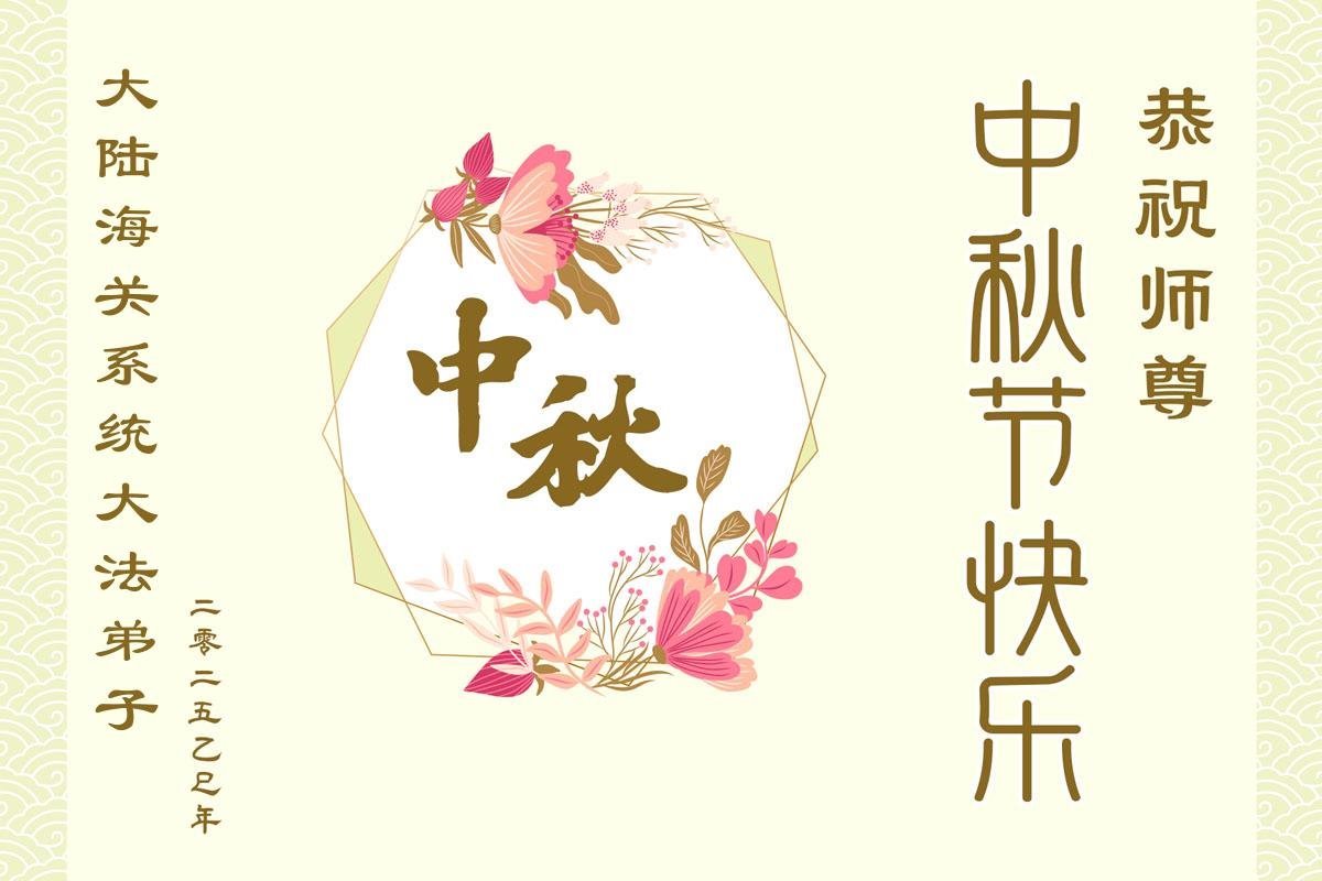 Praktikanti Falun Dafe u različitim profesijama, uključujući pravo, vodozaštitu, računovodstvo, građevinarstvo, elektroenergetske sisteme, naftna polja i upravljanje šumarstvom u provincijama Šandong, Hebej, Đilin, Đijangsu, Šansi, Sičuan i Junan, žele Učitelju srećan Praznik sredine jeseni!