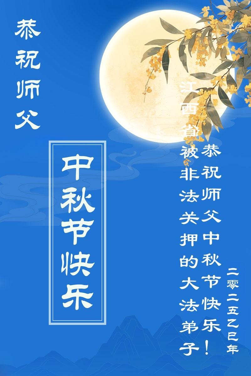 Unatoč kontinuiranom progonu i mučenju u pritvoru, mnogi praktikanti uspjeli su poslati svoje najljepše želje Učitelju Liju povodom Praznika sredine jeseni (6. listopada 2025.). Zahvalili su mu što ih je podučio principima Istinitosti-Suosjećanja-Strpljivosti, svjetioniku koji im je pomogao kroz najmračnija vremena u pritvoru. Zavjetovali su se da nikada neće posustati u svojoj vjeri i izrazili svoju odlučnost da nastave podizati svijest o progonu i širiti blagoslove Falun Dafa.
