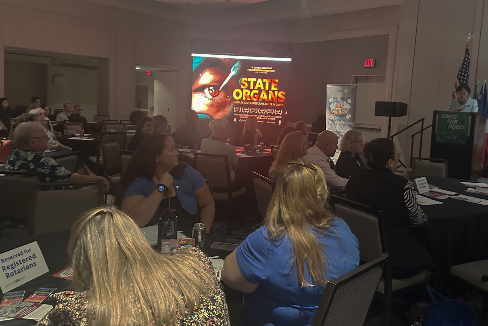 Rotari klub Vašingtona bio je domaćin projekcije dokumentarnog filma „Državni organi“ u balskoj dvorani hotela Vestin, blizu Bele kuće u Vašingtonu, uveče 3. oktobra 2025. Prisustvovalo je oko 150 ljudi, većinom članova Rotarija iz šireg područja Vašingtona.