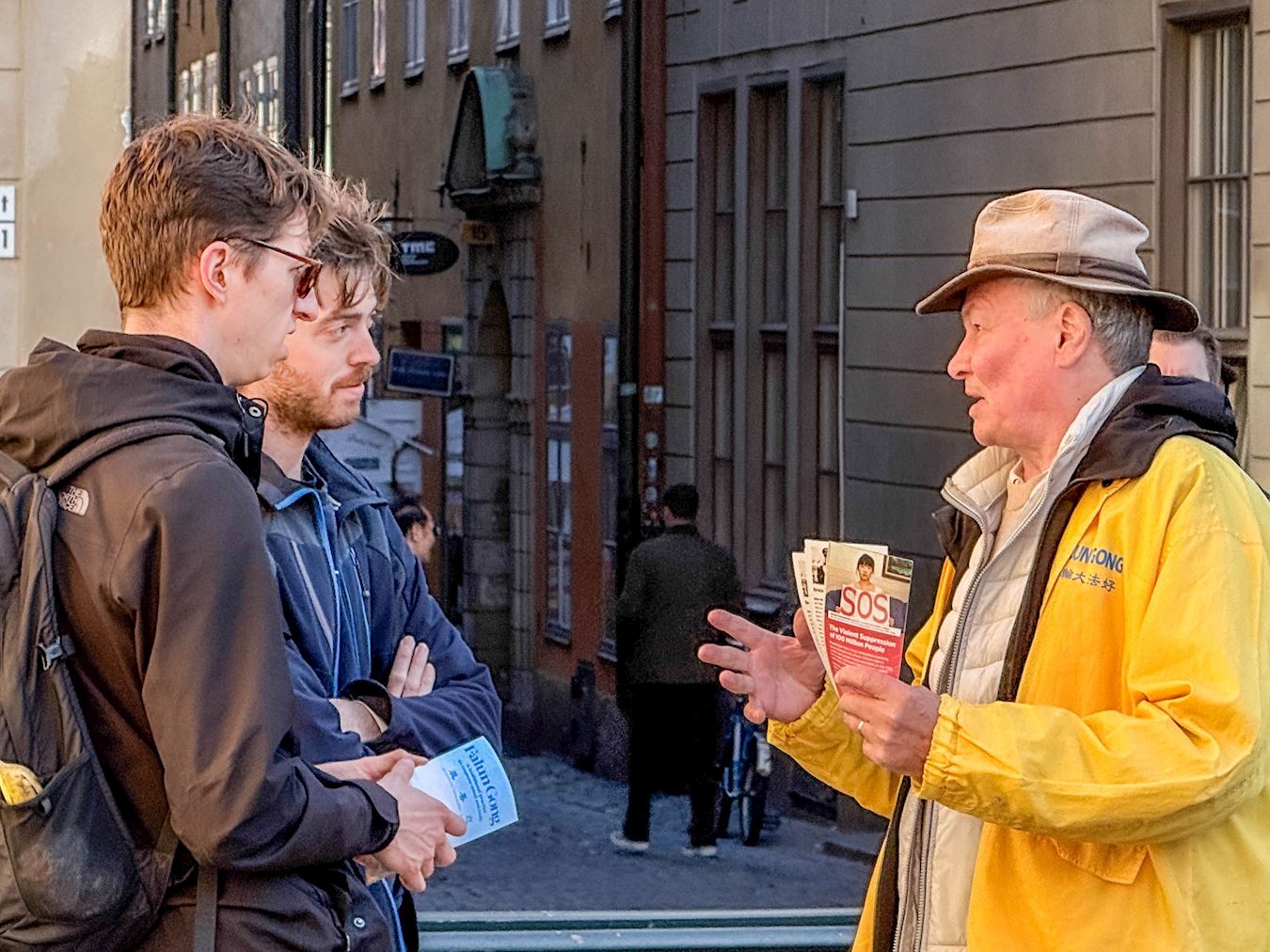 Kinez u 60-im godinama života se, 12. oktobra, zaustavio da razgovara s praktikantima. Rekao je da je nekoliko godina pratio medije koje vode praktikanti Falun Dafa i da mu je drago što je lično posjetio praktikante.